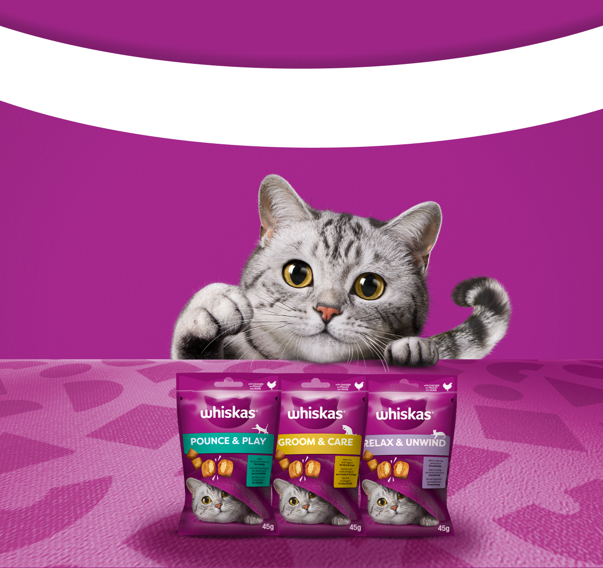 Nawet jeśli Twój kot jest starszym pupilem, wciąż chce czerpać z życia pełnymi łapkami. Dlatego właśnie produkty Whiskas przeznaczone dla kotów w wieku powyżej 7 lat zostały przygotowane w taki sposób, by dbać o najważniejsze organy Twojego kota, wspierając także jego wzrok i piękny wygląd sierści.