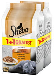 SHEBA Selection Select Slices Drobiowe Smaki saszetki 120x85 g – mokra karma pełnoporcjowa dla dorosłych kotów, w sosie (kawałki z: kaczką, kurczakiem, drobiem, kaczką i indykiem)