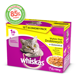 WHISKAS Adult saszetka 12 x 85 g Drobiowa Uczta - mokra karma pełnoporcjowa dla dorosłych kotów, w galaretce (kawałki z: kurczakiem, kaczką, drobiem, indykiem)