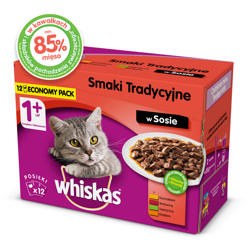 WHISKAS Adult saszetka 12 x 85 g Klasyczne Posiłki - mokra karma pełnoporcjowa dla dorosłych kotów, w sosie (kawałki z: wołowiną, kurczakiem, jagnięciną, drobiem)