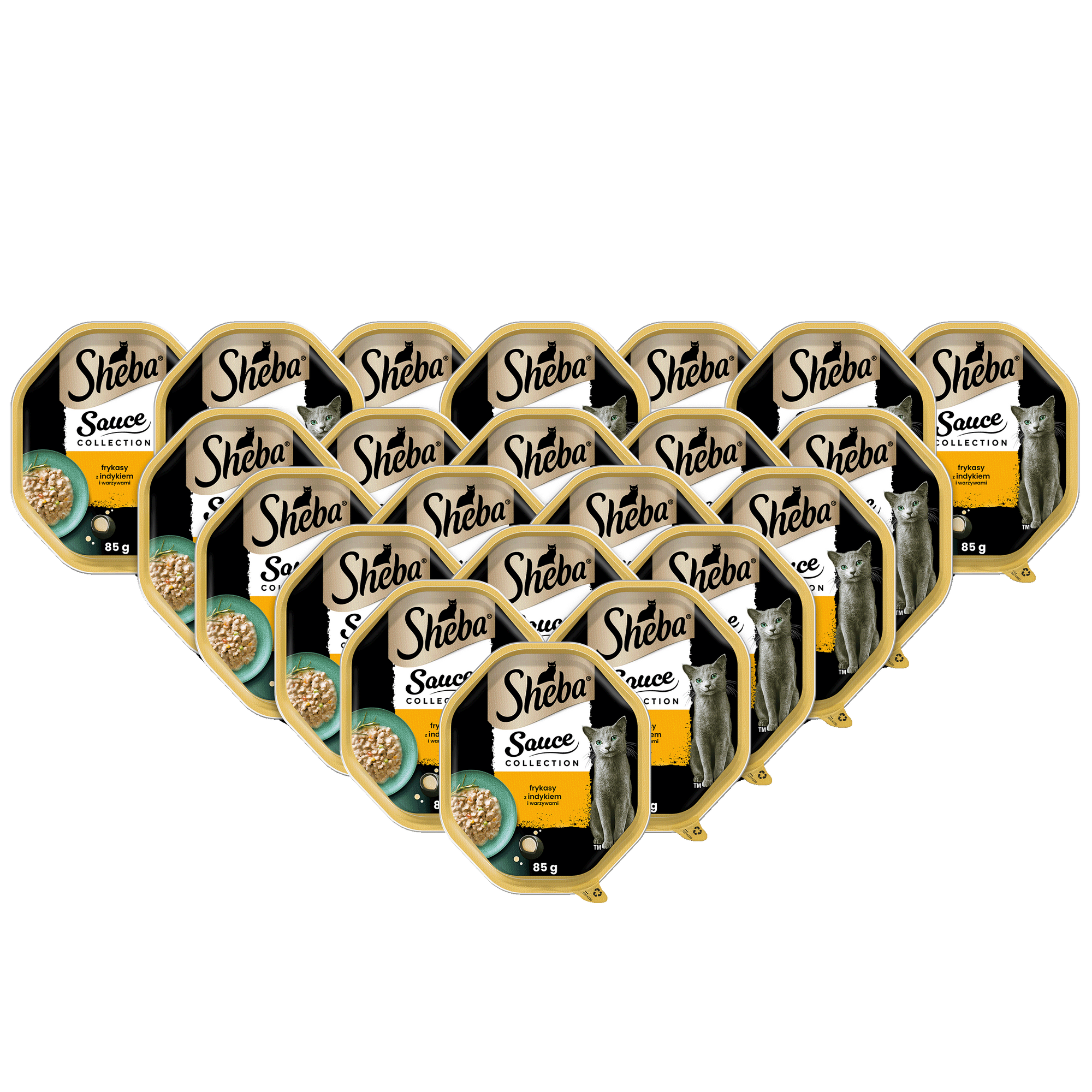 Sheba® Sauce Collection to mieszanka starannie wyselekcjonowanych kawałków w aksamitnym sosie. Frykasy z indykiem i warzywami zachwycą podniebienia nawet najbardziej wymagających kotów. Sekretem mistrzowskiej receptury Sheba® Sauce Collection są wyrafinowane składniki oraz witaminy i minerały. W każdej tacce znajdują się składniki odżywcze, wspierające prawidłowe funkcjonowanie Twojego kota. Pozwól swojemu kotu na kulinarną rozkosz, aby mógł delektować się pyszną karmą Sheba® Sauce Collection, która zaspokoi nawet najbardziej wybredny apetyt.