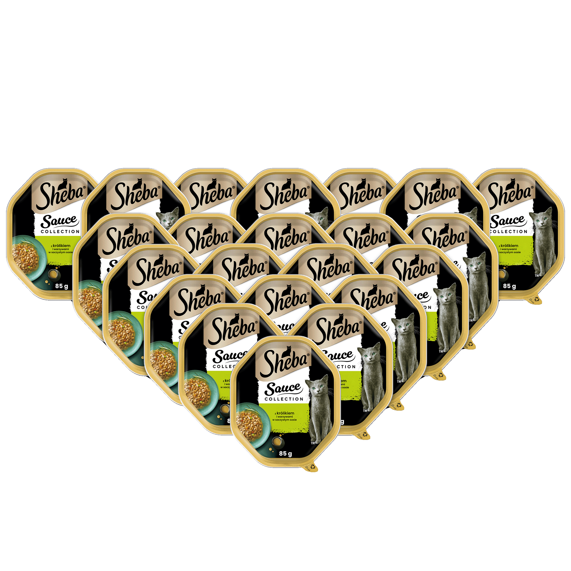 SHEBA Sauce Collection tacka 22x85 g – mokra karma pełnoporcjowa dla dorosłych kotów, kawałki z królikiem i warzywami, w sosie