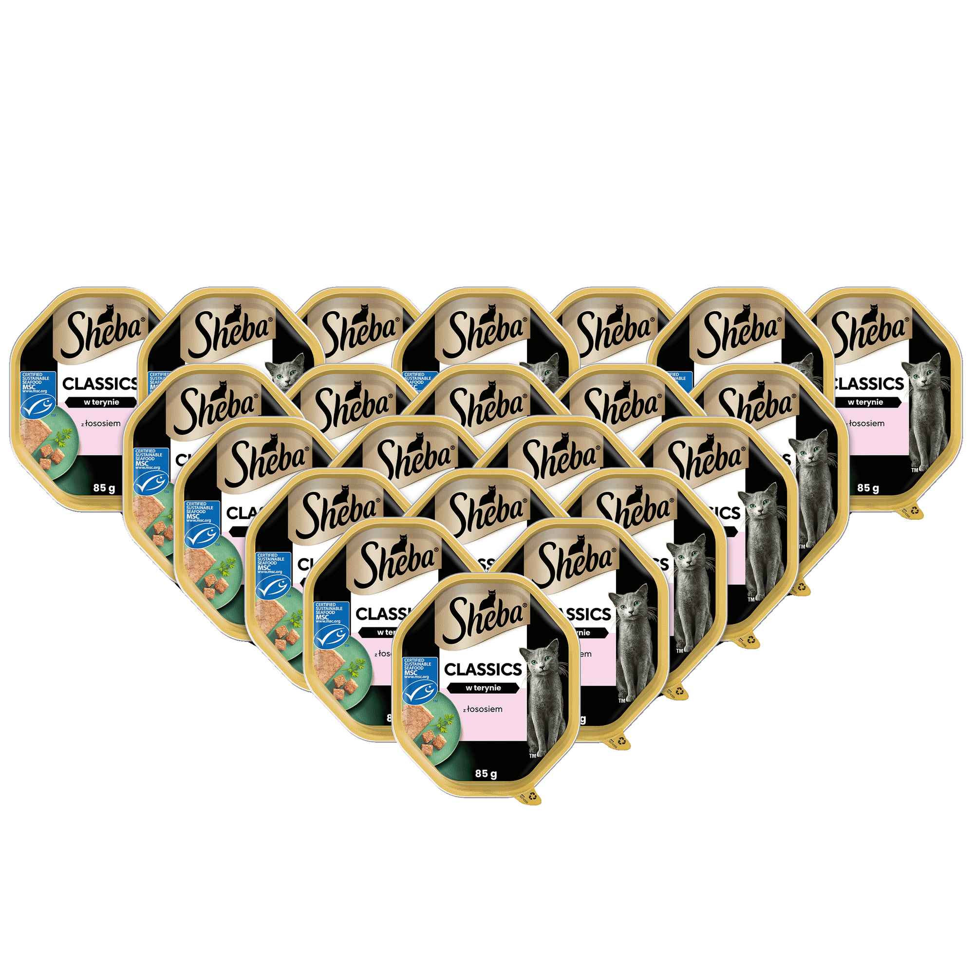 SHEBA Classics tacka 22x85 g – mokra karma pełnoporcjowa dla dorosłych kotów, z łososiem, w terynie