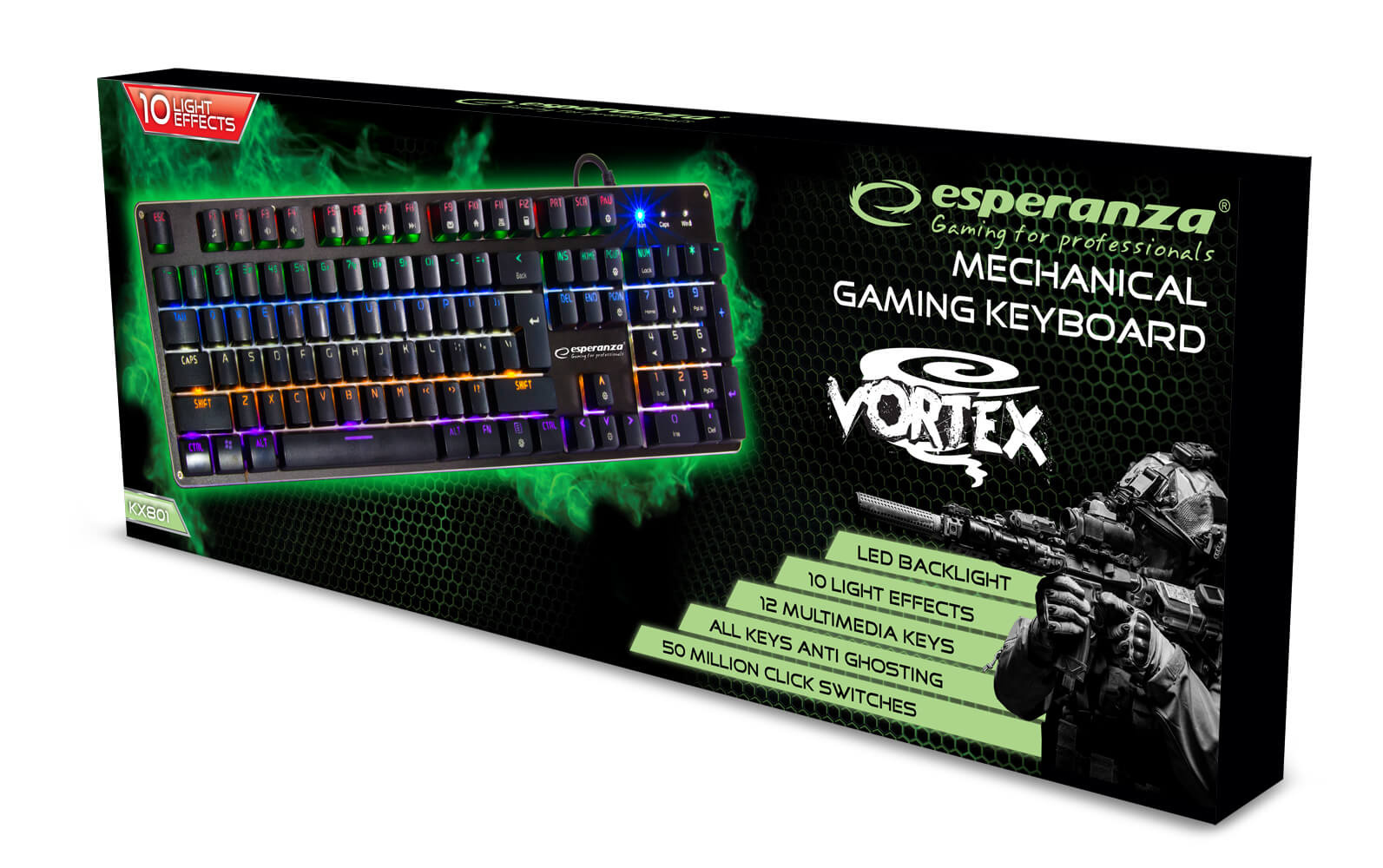 - ESPERANZA KLAWIATURA PRZEWOD. MULTIMED. MECHANICZNA GAMING LED RAINBOW USB VORTEX