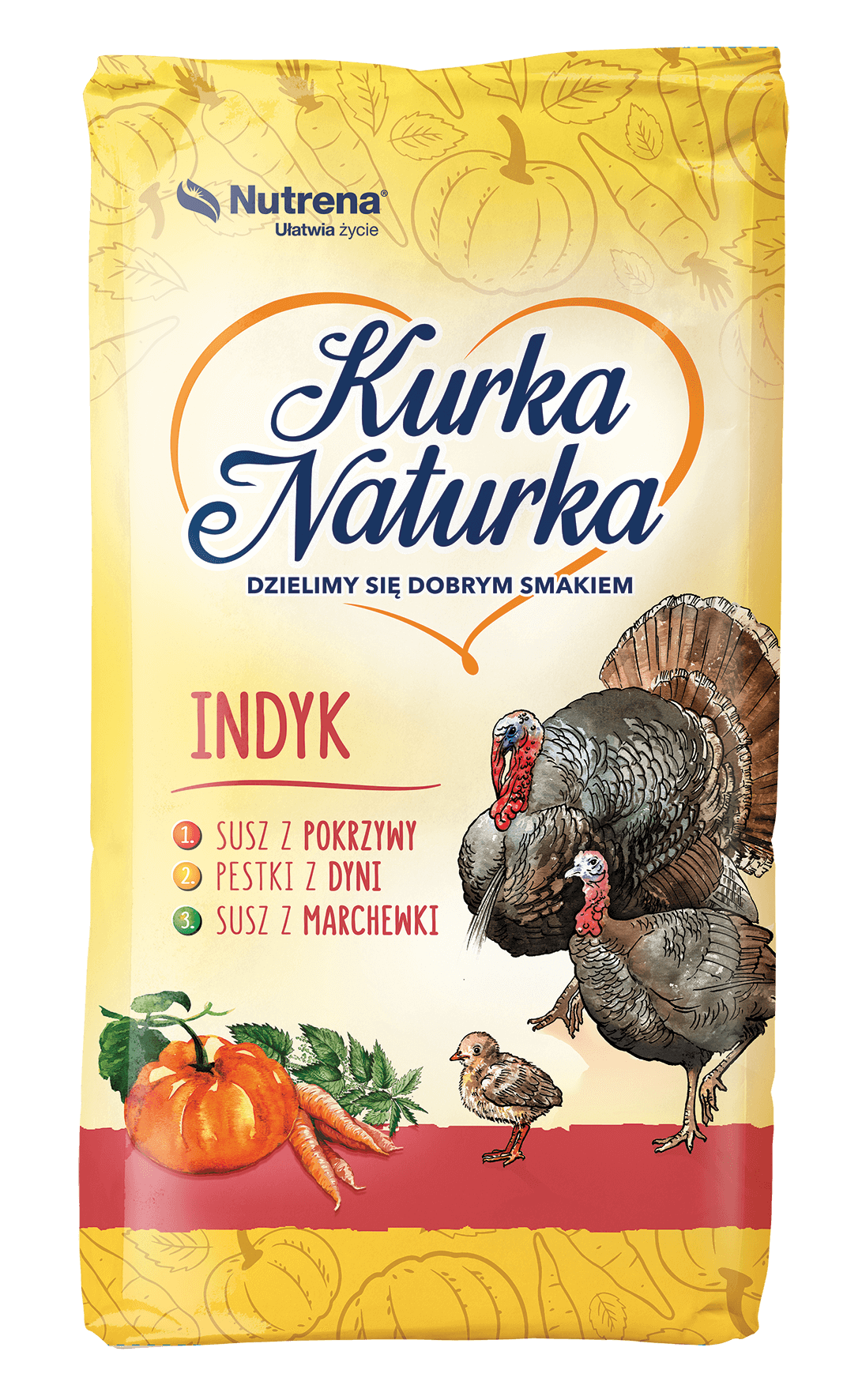 Kurka Naturka to najwyższej jakości pasza, stworzona z myślą o zdrowiu całej rodziny. Zawarte w niej susz z pokrzywy, marchew, kukurydza, soja i wyciąg z ziół są źródłem witamin i składników mineralnych. Kurka Naturka jest ważna dla wszystkich. Z przyjemnością możesz patrzeć, jak pięknie i zdrowo rozwijają się Twoje zwierzęta. Dzięki Kurce Naturce możesz przygotować najsmaczniejsze posiłki, ciesząc się zdrowiem Twoich bliskich.