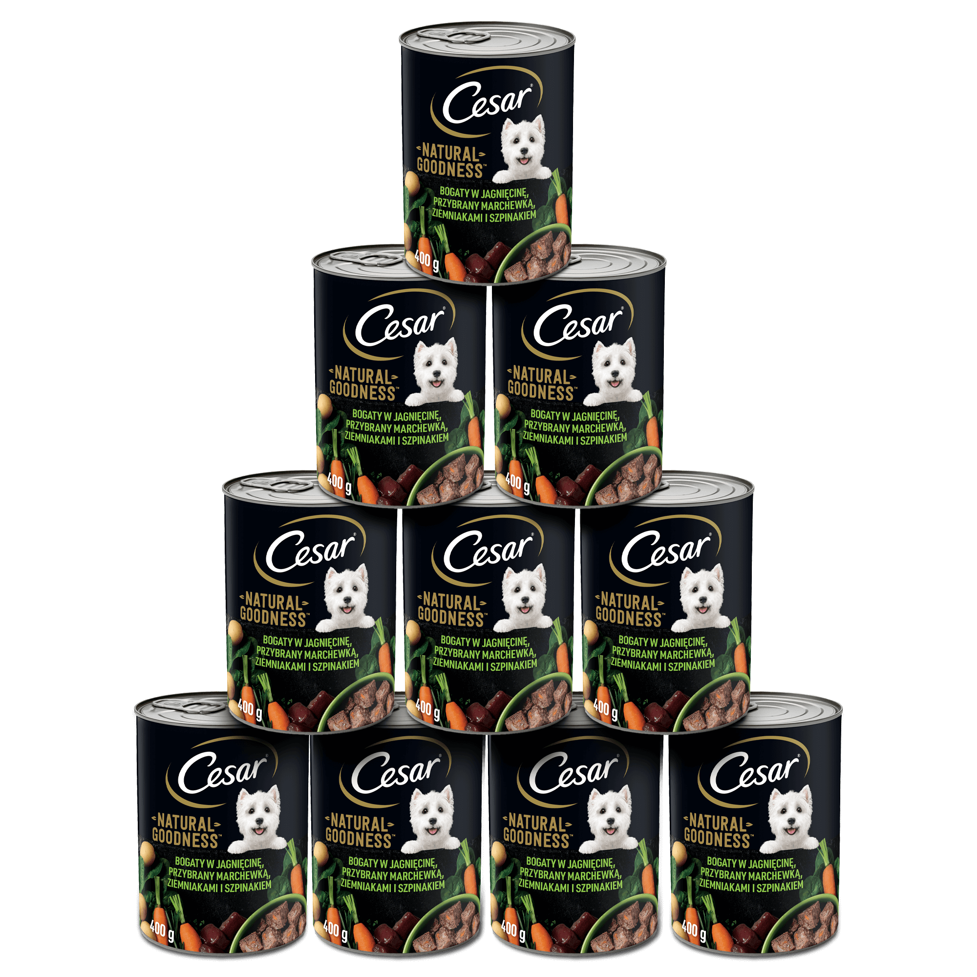 Jedzenie dla psa Cesar® Natural Goodness Bogaty w Jagnięcinę zostało przygotowane według starannie dobranej receptury, która zapewnia psom wszystko, czego potrzebują każdego dnia. W jej opracowaniu brali udział dietetycy i lekarze weterynarii z Instytutu Nauki o Zwierzętach WALTHAM™. To jedzenie idealne na codzienny, świeży i pyszny posiłek. Możesz je podawać z karmą suchą lub jako samodzielne danie. Jest bogate w jagnięcinę, przybrany warzywami i ziołami – szpinak to źródło żelaza i potasu, marchewka jest źródłem przeciwutleniaczy, a rozmaryn i natka pietruszki, wpływają na apetyczność jedzenia. Karma Cesar® Natural Goodness Bogaty w Jagnięcinę została przygotowywana tak, aby zachować naturalne wartości odżywcze i pyszny smak.