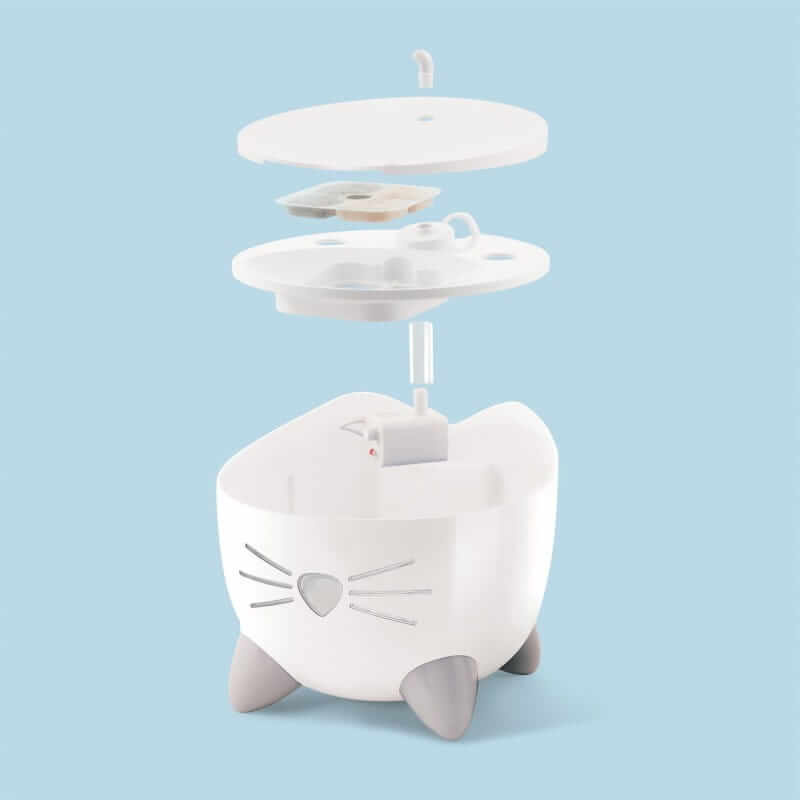 Fontanna Catit PIXI zapewnia Twojemu kotu stałe źródło świeżej, oczyszczonej wody. Bieżąca woda zachęca koty do picia większej ilości wody, co pomaga zapobiegać chorobom dróg moczowych