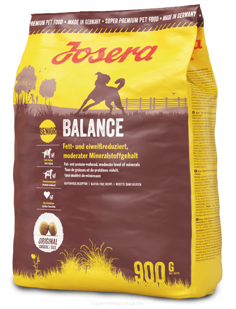 Dostosowana do potrzeb starszych psów: Josera Balanceto specjalna karma wspierająca większą witalność w starszym wieku. Obniżona zawartość tłuszczu i białka pomaga zmniejszyć obciążenie metabolizmu psa. Dobrze tolerowana, zbilansowana formuła nie zawiera glutenu i dzięki cennym przeciwutleniaczom, takim jak witaminy E i C oraz tauryna, może przeciwdziałać procesom starzenia się komórek. Ponadto, jako karma o niskiej zawartości fosforu, może odciążać narządy wewnętrzne starszych psów.