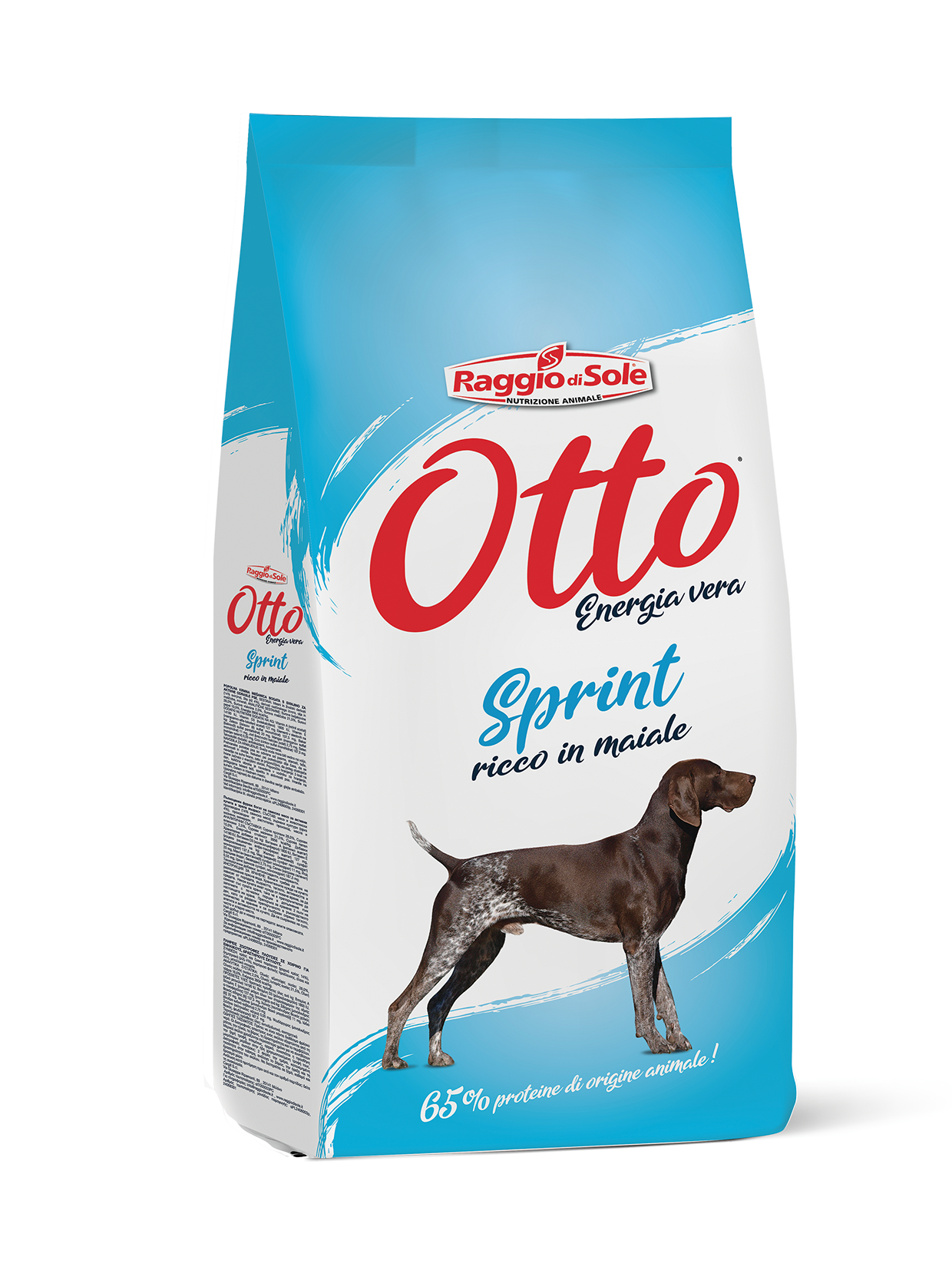 OTTO Sprint to nowe dzienne menu dla dorosłych psów o zwiększonej aktywności. Dzięki wysokiej zawartości białka pochodzenia zwierzęcego (65%), OTTO Sprint pomaga zachować napięcie mięśniowe. Jego pyszna formuła bogata w wieprzowinę gwarantuje maksymalne walory smakowe i dużo energii. OTTO Sprint wspiera optymalną sprawność fizyczną aktywnych psów, pomagając również zachować zdrową skórę oraz miękką i lśniącą sierść. Ponadto jest wyjątkowo lekkostrawny, dzięki czemu doskonale sprawdza się jako codzienny pokarm.