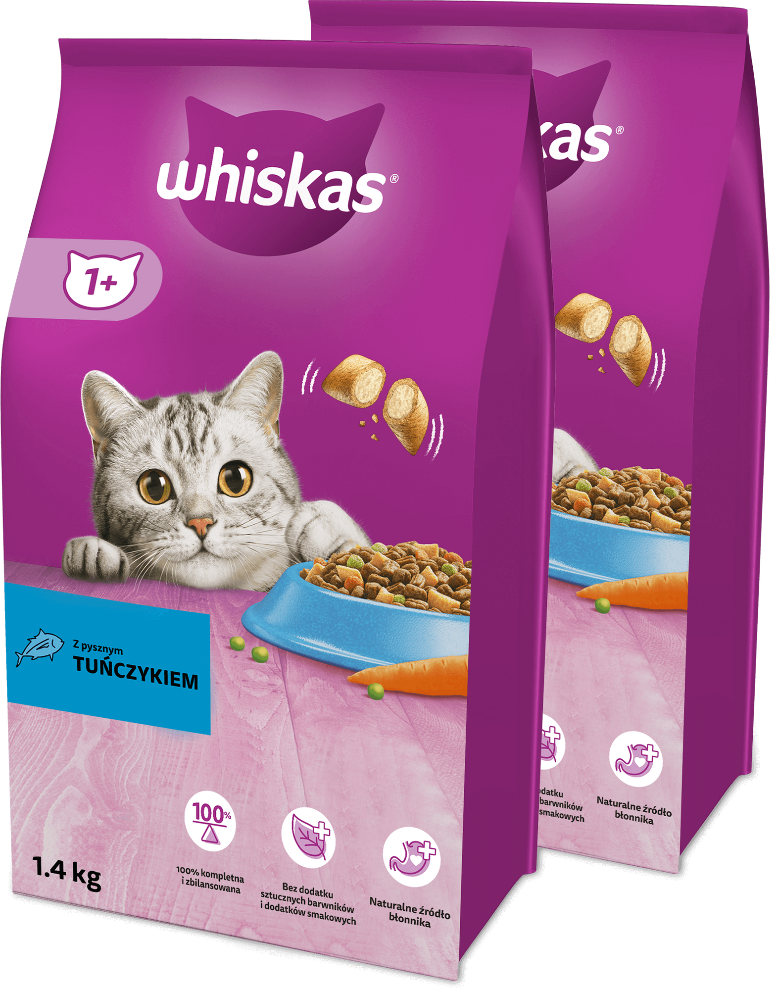 WHISKAS Adult 2x1,4 kg - sucha karma pełnoporcjowa dla dorosłych kotów, z pysznym tuńczykiem
