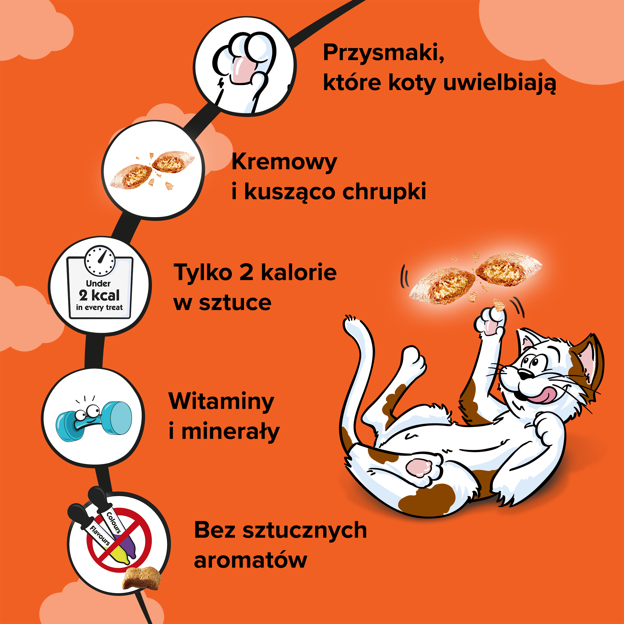 - Lekka Przyjemność - Jedno ciasteczko Dreamies™ zawiera tylko 2 kcal.