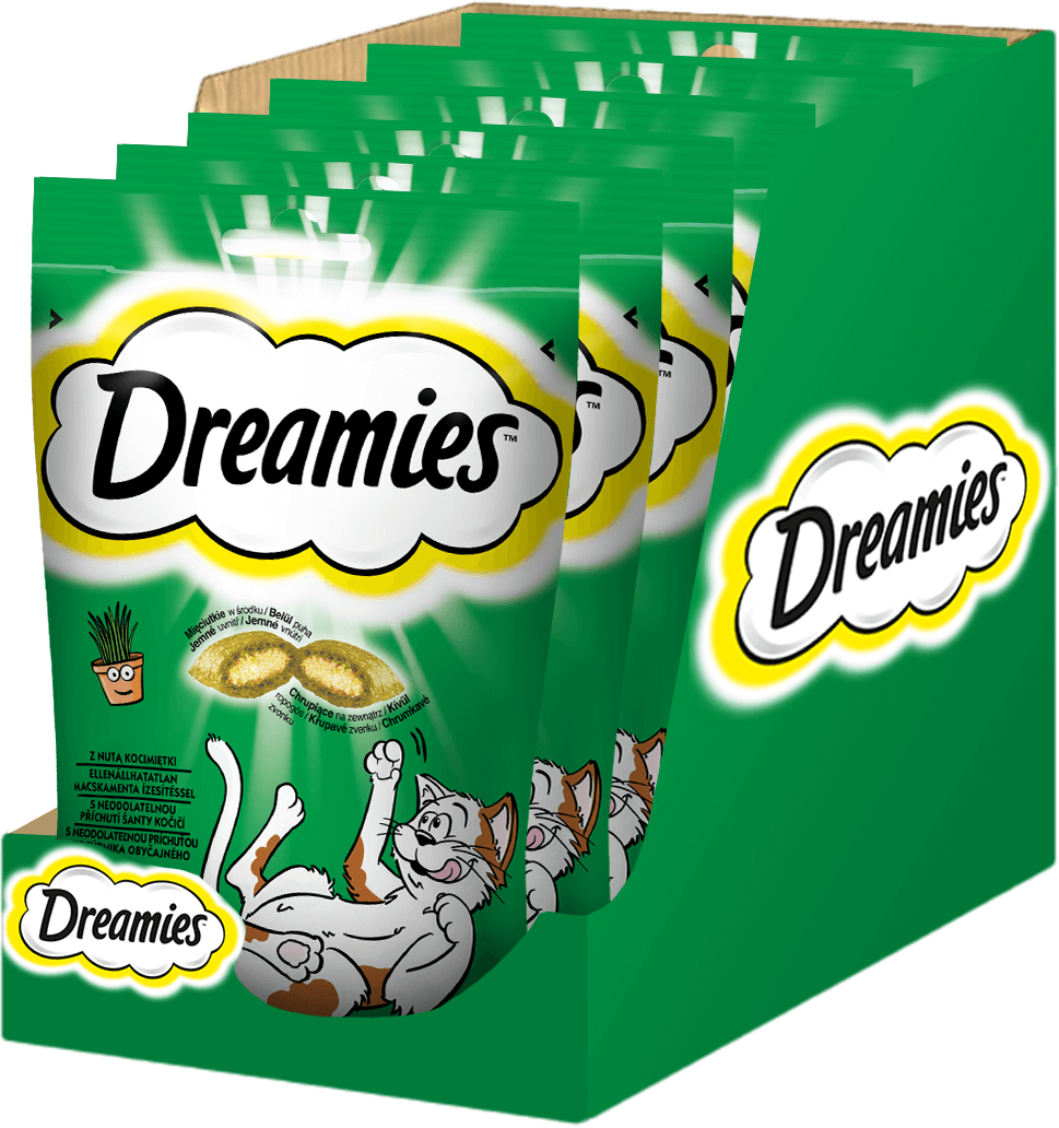 Dreamies™ z nutą kocimiętki to wyśmienite chrupiące paszteciki z miękkim nadzieniem dla kotów powyżej 8. tygodnia życia. Ich skład został opracowany przez specjalistów ds. żywienia i lekarzy weterynarii z Instytutu Nauki o Zwierzętach WALTHAM, dzięki czemu przysmaki Dreamies™ nie tylko mają doskonały smak, ale są także są wzbogacone minerałami i witaminami. Paszteciki Dreamies™ są doskonałą przekąską, którą mile zaskoczysz swojego kociego przyjaciela. POTRZĄŚNIJ opakowaniem i zobacz, jak przybiega Twój kot!