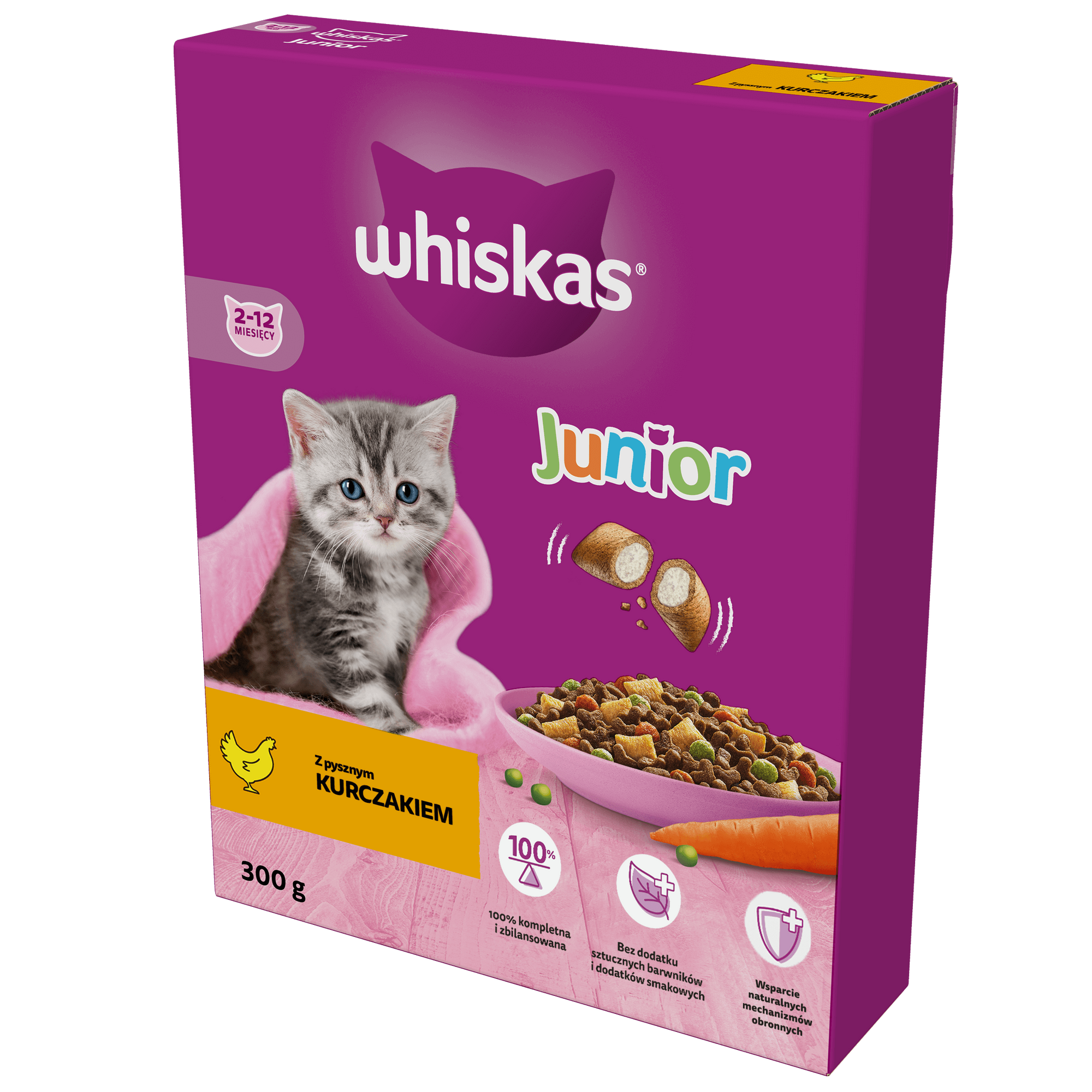 WHISKAS Junior 300 g - sucha karma pełnoporcjowa dla kociąt, z pysznym kurczakiem