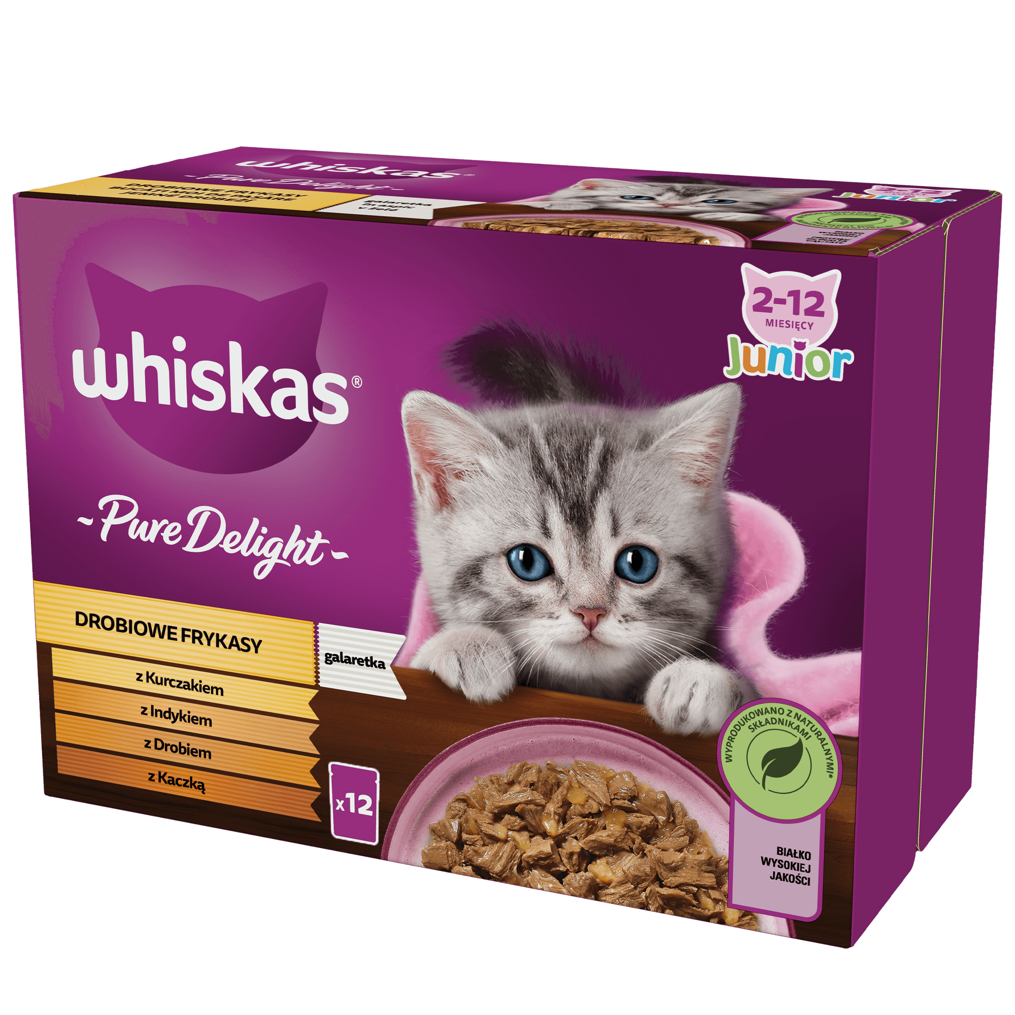 WHISKAS Junior saszetka 12 x 85 g Drobiowe Frykasy - mokra karma pełnoporcjowa dla kociąt, w galaretce (kawałki z: kurczakiem, indykiem, drobiem, kaczką)