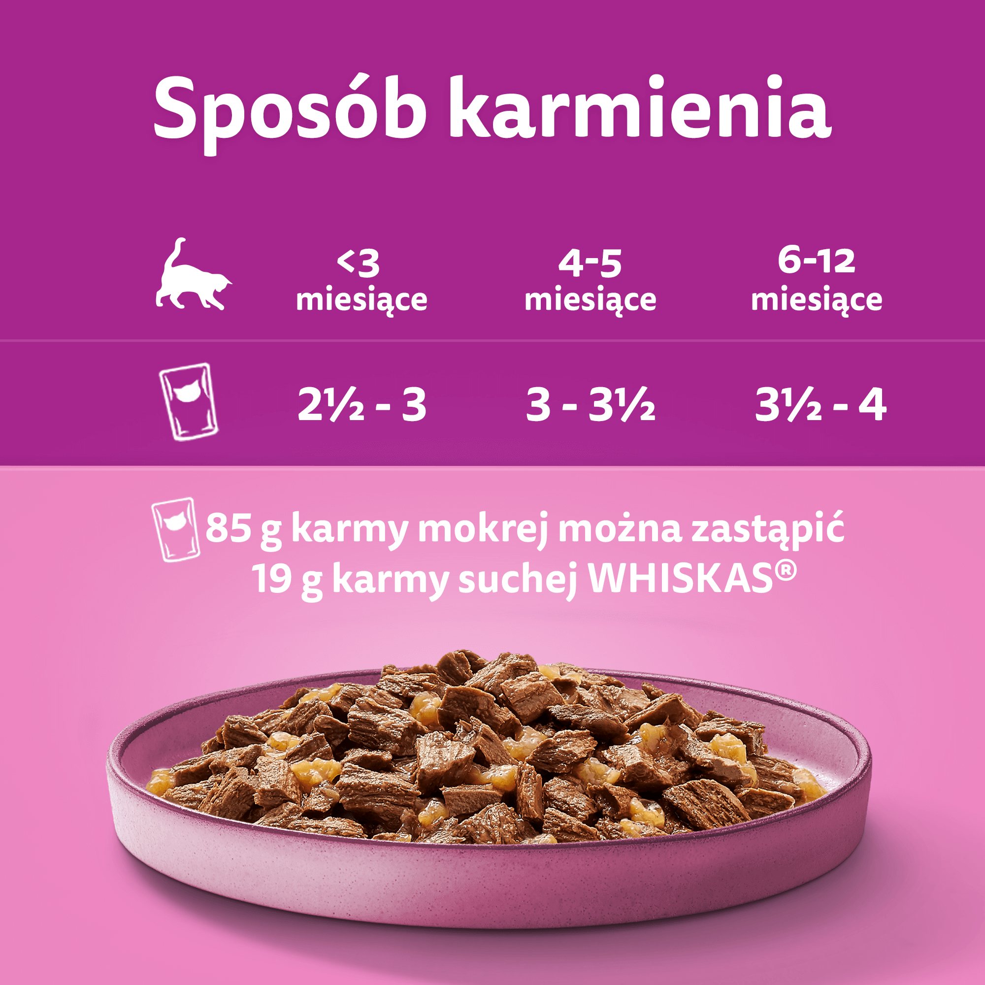 85 g karmy mokrej można zastąpić 19 g karmy suchej WHISKAS®.