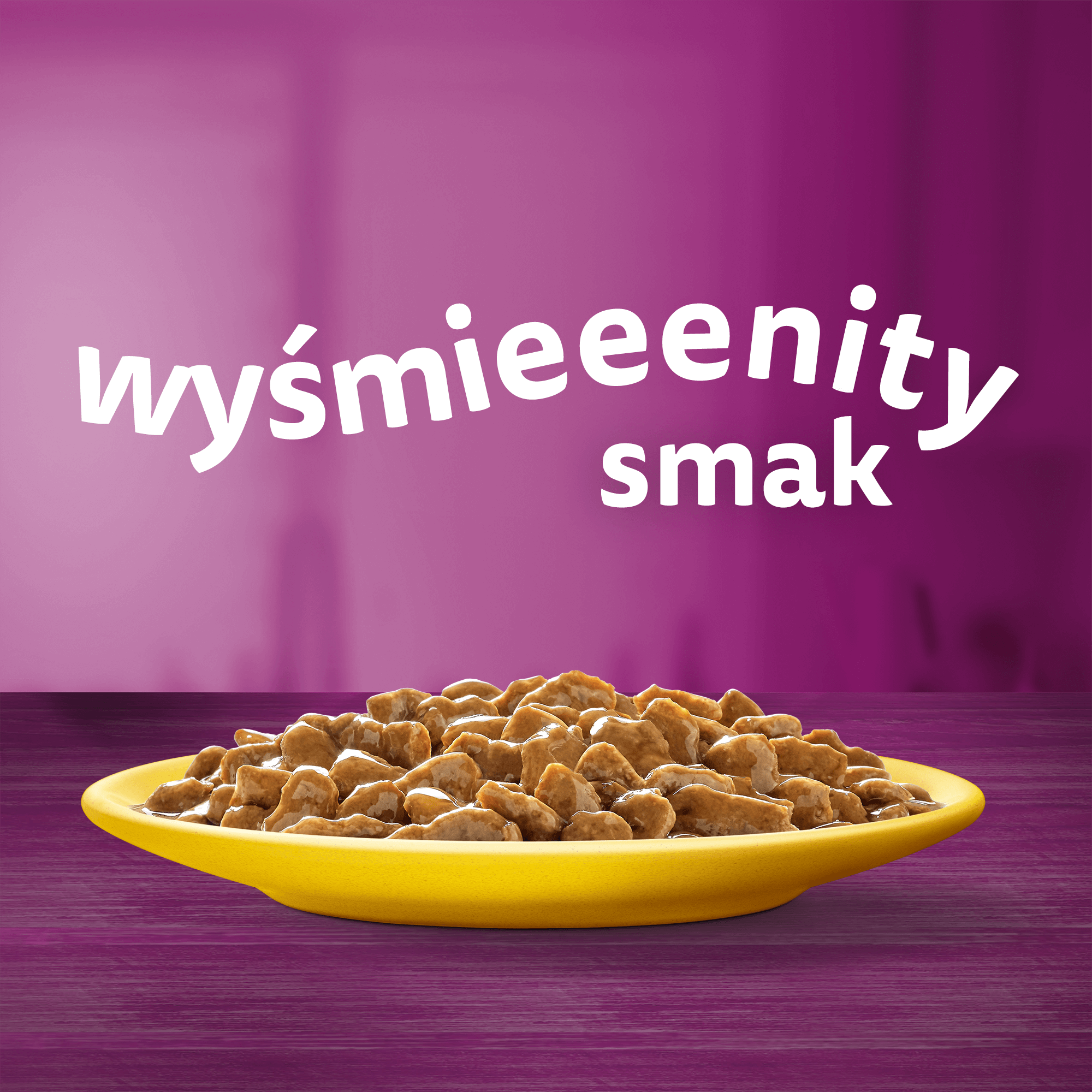 Nasze posiłki Whiskas Drobiowa Uczta w sosie zostały specjalnie przygotowane tak, aby zachować naturalne wartości odżywcze i smak wysokiej jakości składników. Sprawią, że Twój kot przybiegnie do miski szybciej niż kiedykolwiek wcześniej! Koci przyjaciel rozsmakuje się w jednym z dwóch wariantów: kawałki z kurczakiem oraz z indykiem. Ten smaczny pokarm w wygodnej saszetce zawiera cynk, który wspiera zdrowie skóry i sierści, a odpowiedni bilans minerałów pomaga zadbać o kondycję dróg moczowych Twojego pupila. Od figlarnego kocięcia po wspaniałego dorosłego kota – nasze smakowite receptury zostały opracowane z myślą o tym, aby kot w każdym wieku mruczał z zadowolenia w porze posiłku i nie tylko.