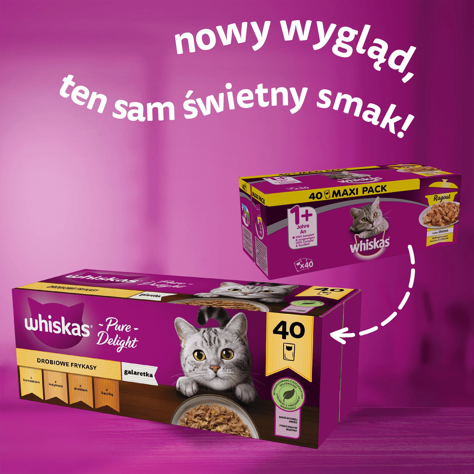 WHISKAS Adult saszetka 40 x 85 g Drobiowe Frykasy - mokra karma pełnoporcjowa dla dorosłych kotów, w galaretce (kawałki z: kurczakiem, indykiem, drobiem, kaczką)
