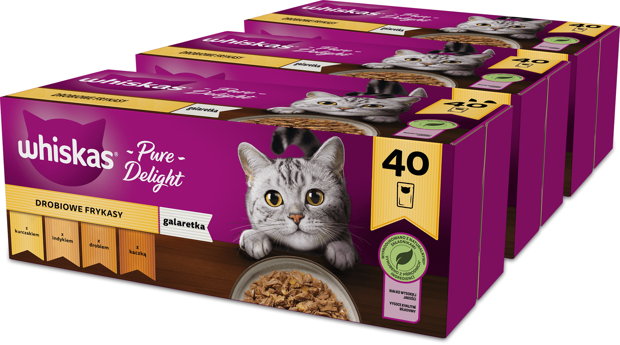 WHISKAS Adult saszetka 3x40x85g Drobiowe Frykasy - mokra karma pełnoporcjowa dla dorosłych kotów, w galaretce (kawałki z: kurczakiem, indykiem, drobiem, kaczką)