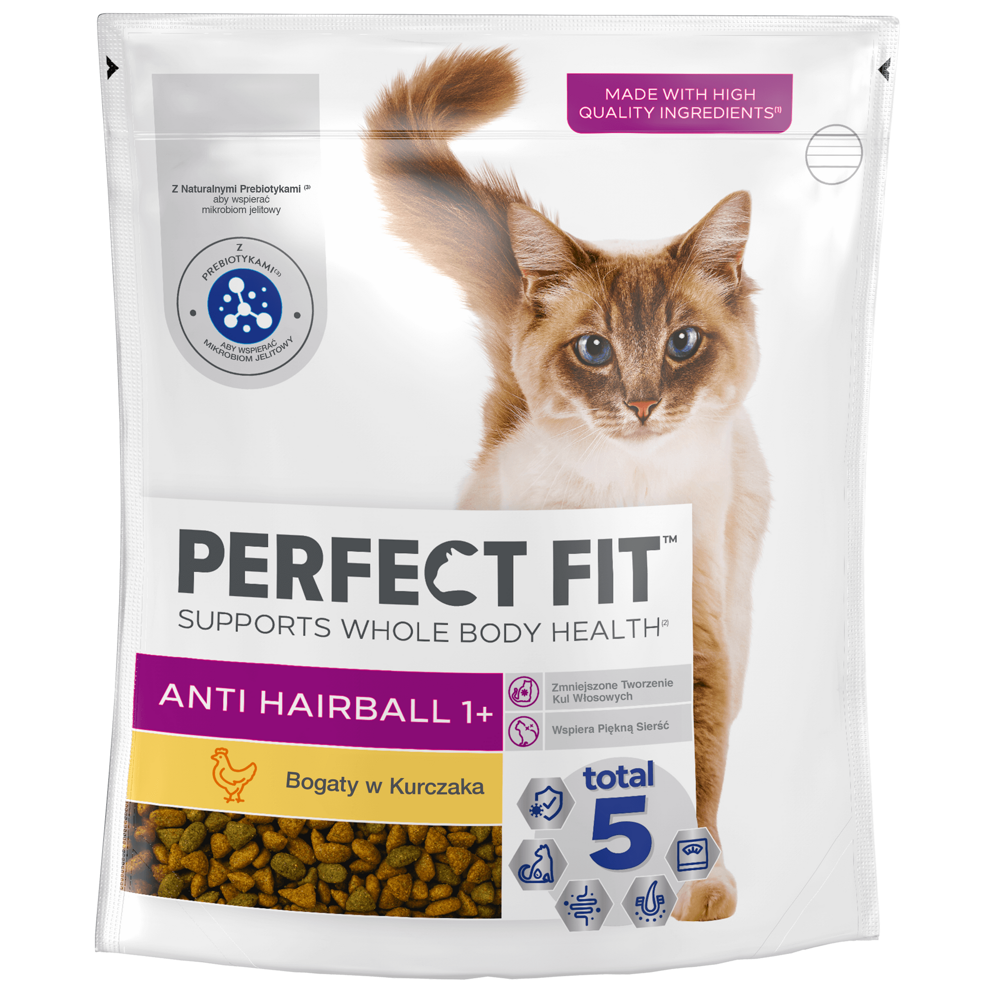 Perfect Fit™ Antihairball 1+, 750 g – sucha karma pełnoporcjowa dla dorosłych kotów, bogata w kurczaka