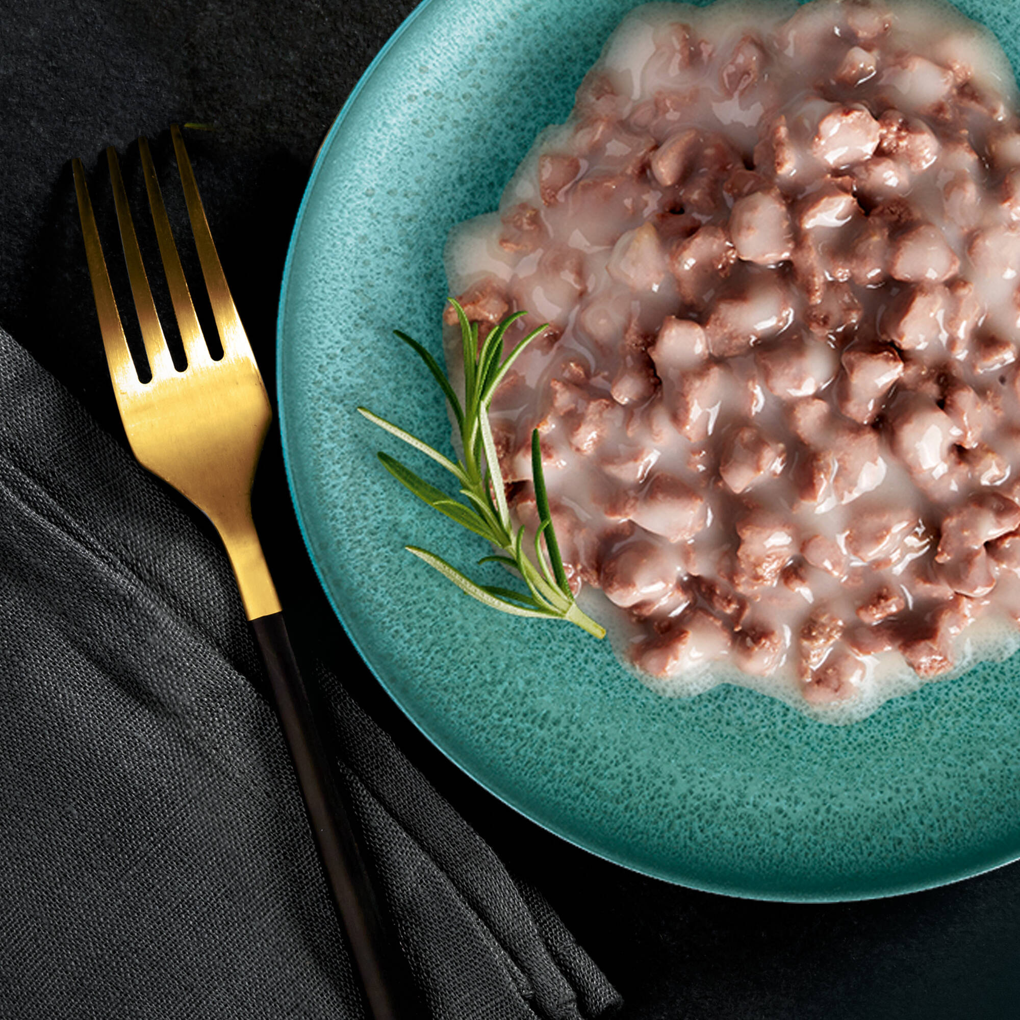 • Kusząca receptura z kawałkami, które Twój kot pokocha.