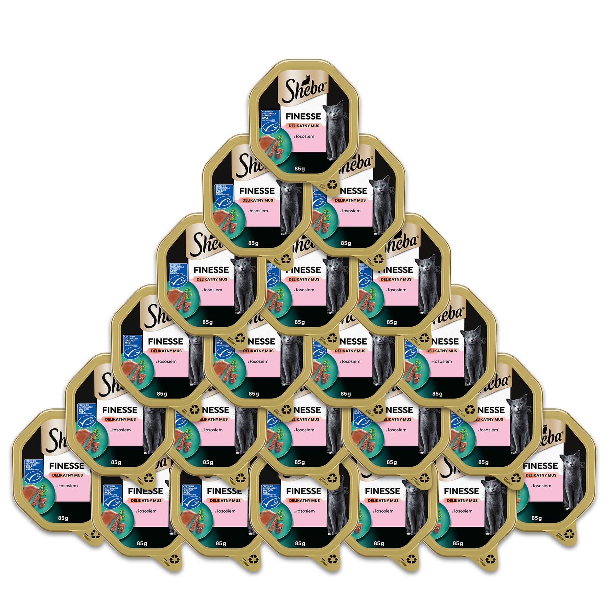 Pełnoporcjowa karma Sheba® Finesse to prawdziwa rozkosz w formie delikatnego musu dla Twojego kociego przyjaciela. Propozycja posiłku z łososiem zachwyci podniebienia nawet najbardziej wymagających kotów. Sekretem mistrzowskiej receptury Sheba® Finesse są wyrafinowane składniki oraz witaminy i minerały. W każdej tacce znajdują się składniki odżywcze, wspierające prawidłowe funkcjonowanie Twojego kota. Pozwól swojemu kotu na kulinarną rozkosz, aby mógł delektować się pyszną karmą Sheba® Finesse, która zaspokoi nawet najbardziej wybredny apetyt.