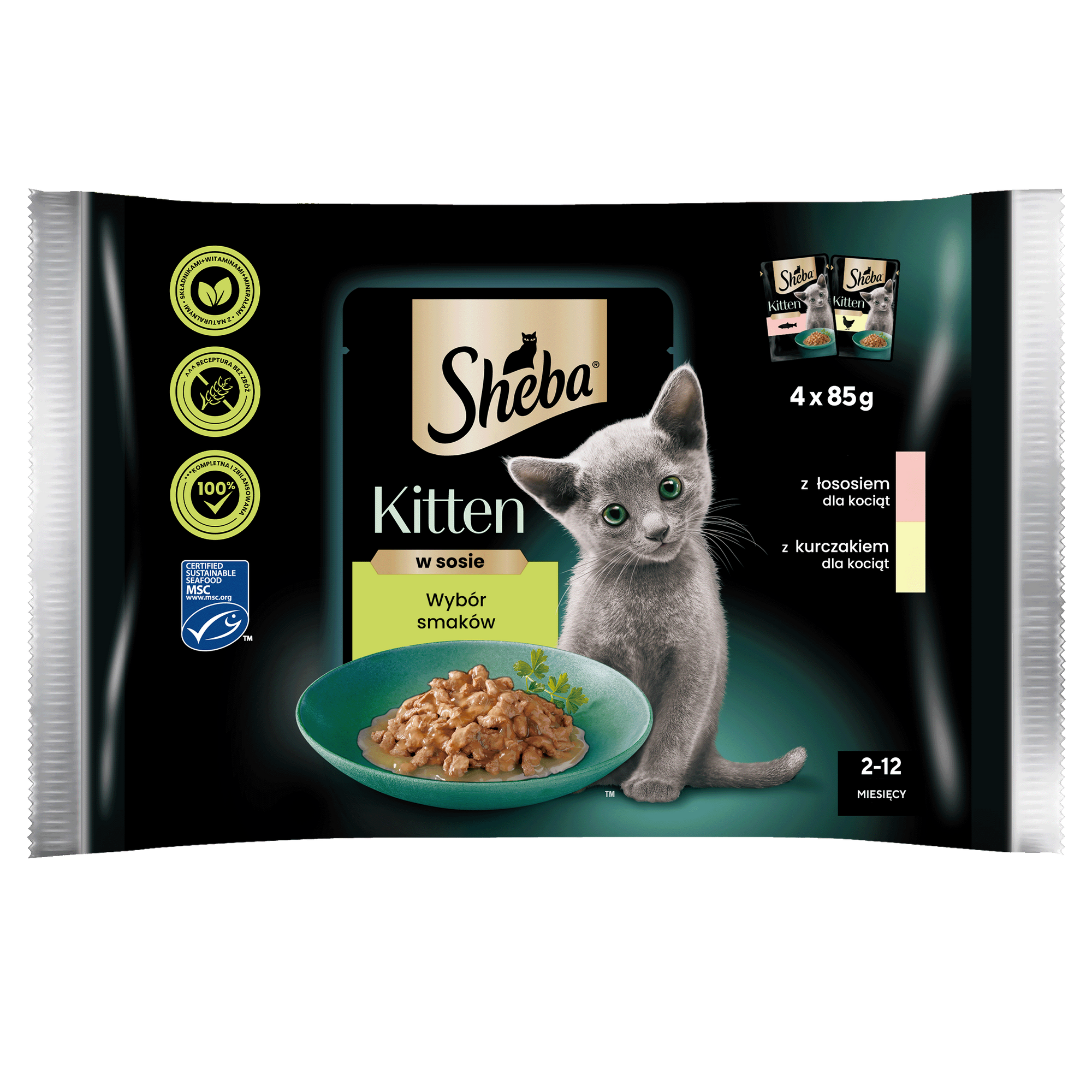 Sheba® Kitten Wybór Smaków to mieszanka starannie wyselekcjonowanych, delikatnych kawałków w przepysznym sosie. Proste receptury wspierają zdrowy wzrost Twojego dorastającego przyjaciela. To propozycja posiłków w postaci mięciutkich kawałeczków, z łososiem i z kurczakiem, idealna dla mlecznych zębów i dopasowana perfekcyjnie do małych pyszczków. Sekretem mistrzowskiej receptury Sheba® Kitten Wybór Smaków są wysokiej jakości naturalne składniki oraz witaminy i minerały. Jedzenie stworzone specjalnie z myślą o rozwijających się kociętach, aby wspierać ich układ odpornościowy, mocne kości i rosnące mięśnie. Pozwól swojemu dorastającemu kotu na kulinarną rozkosz, aby mógł delektować się pyszną karmą Sheba® Kitten Wybór Smaków, która zaspokoi nawet najbardziej wybredny apetyt.