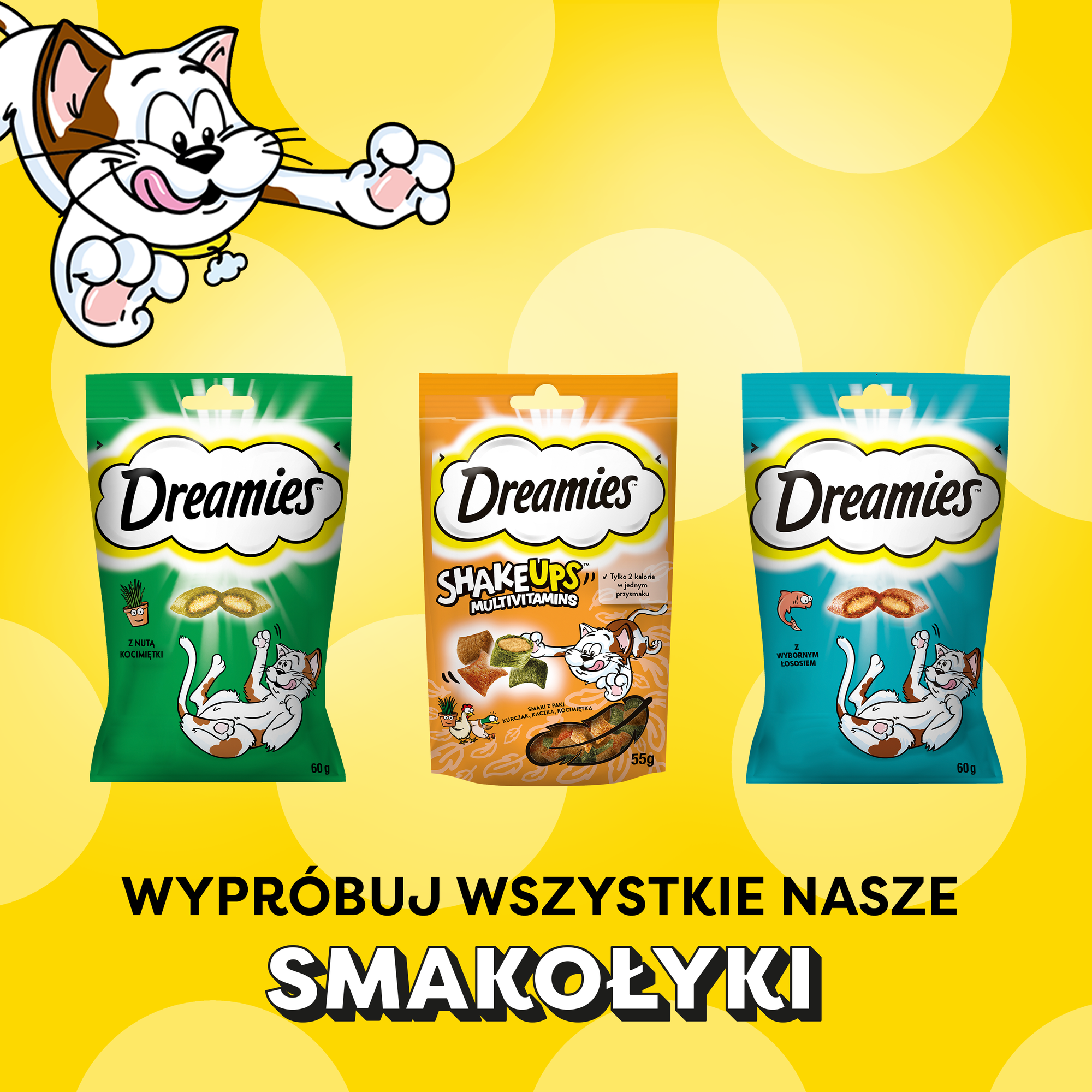 DREAMIES™ Creamy MEGA PACK to dwa zniewalające smaki z serem i z kocimiętką zamknięte w jednym opakowaniu. Stworzony specjalnie z myślą o dorosłych kotach i kociętach powyżej 8 tygodnia życia. Zawiera taurynę, której Twój pupil potrzebuje do prawidłowego rozwoju na każdym etapie swojego życia. Znakomite połączenie smaku i kremowej konsystencji przysmaków DREAMIES™ sprawi, że Twój kot nie będzie mógł się im oprzeć. Kremową przekąskę DREAMIES™ Creamy można podawać w miseczce, dodać do codziennego posiłku kota, a także karmić nią pupila z ręki by cieszyć się wspólnymi chwilami. Ten smaczny pokarm w wygodnej saszetce pozbawiony jest sztucznych barwników, dodatków smakowych oraz cukru. Został opracowany przez lekarzy weterynarii i specjalistów ds. dietetyki z Instytutu Nauki o Zwierzętach WALTHAM™.