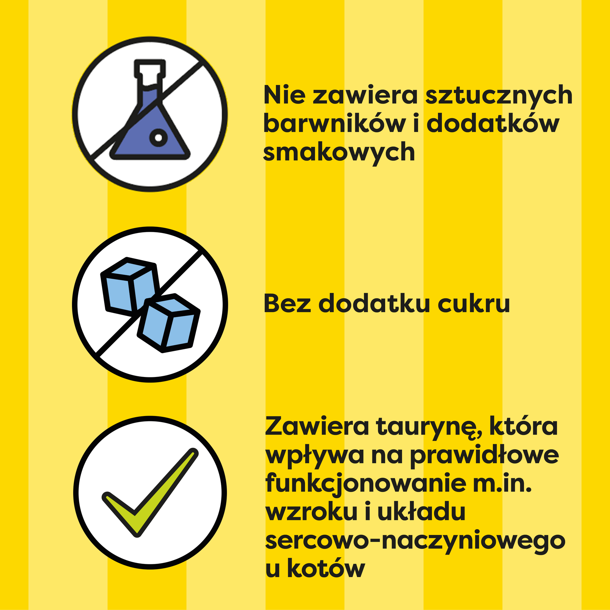 - Zawiera taurynę, która wpływa na prawidłowe funkcjonowanie m.in. wzroku i układu sercowo-naczyniowego u kotów.