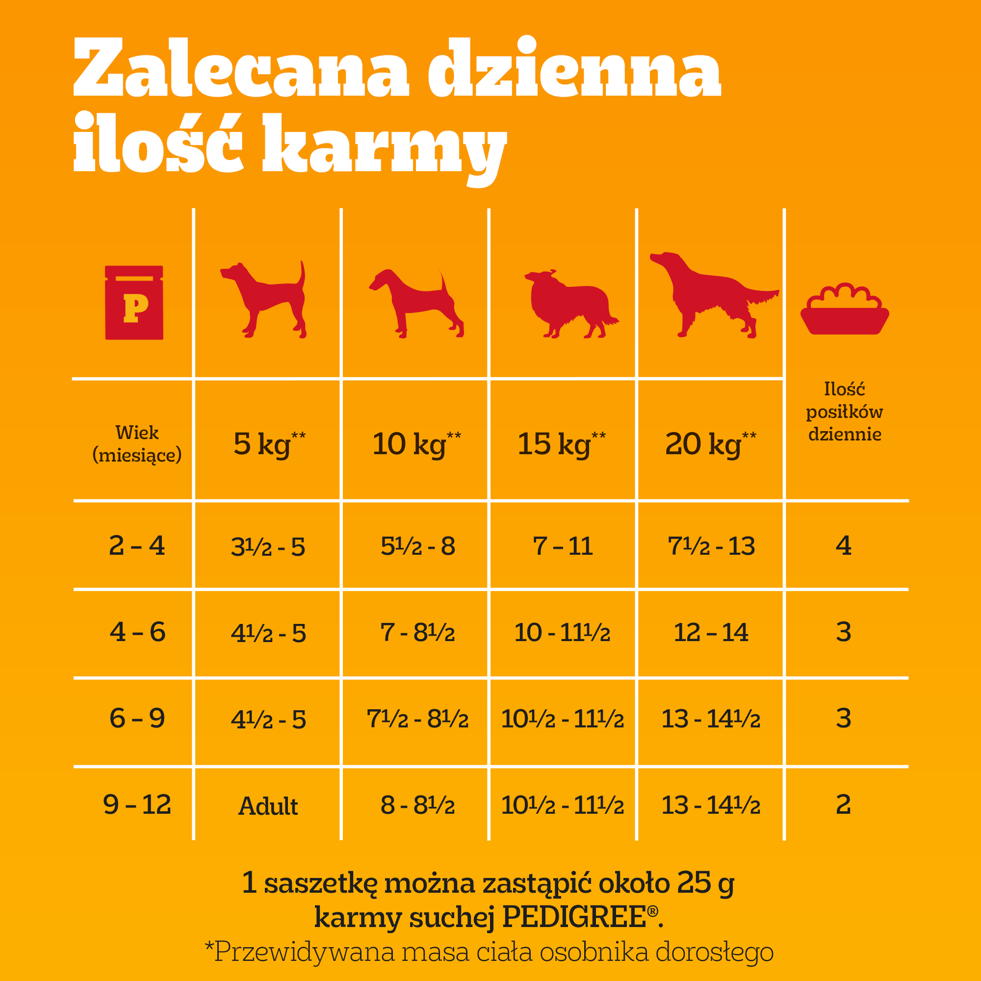 1 saszetkę można zastąpić około 25 g karmy suchej PEDIGREE®.