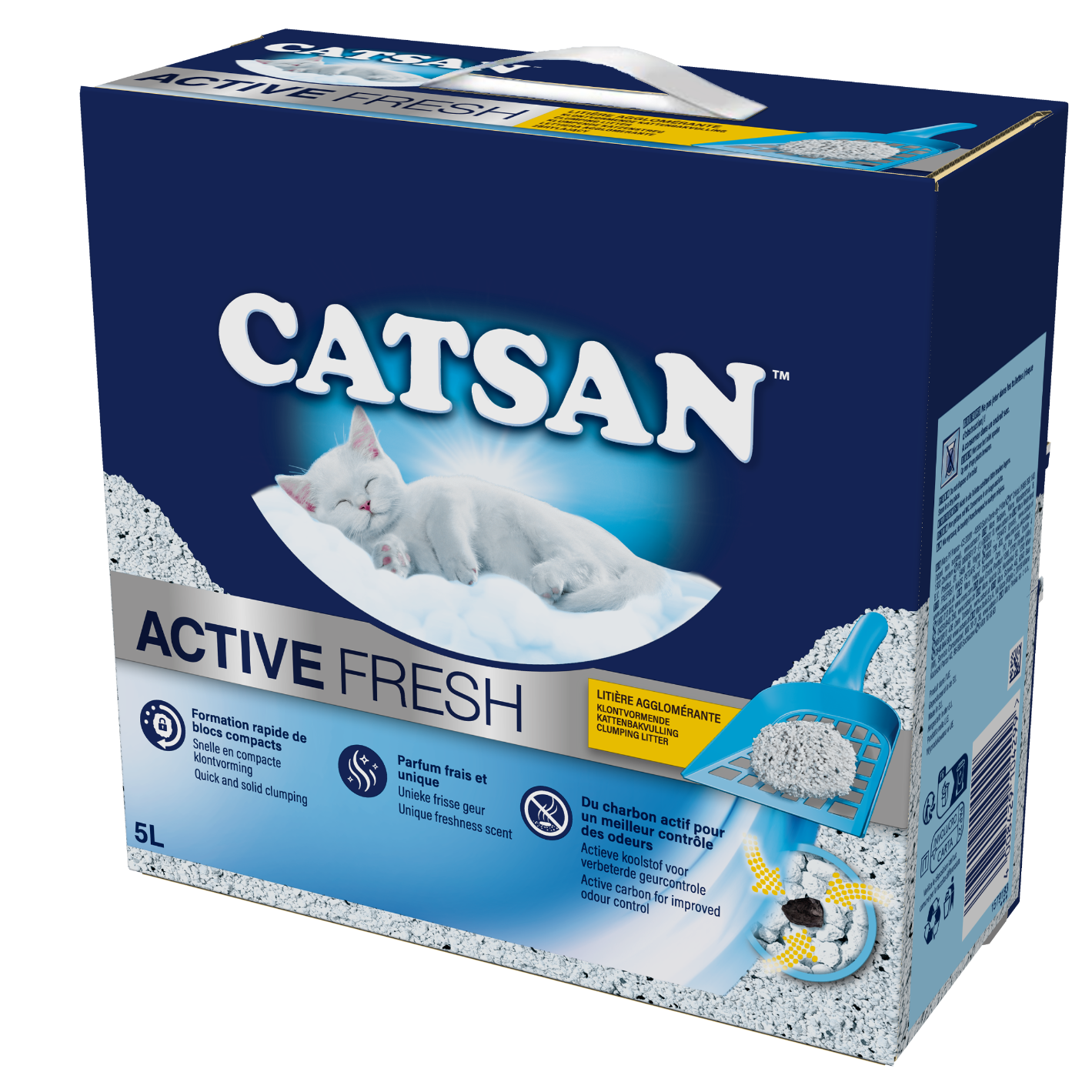 Koty kochają czystość i świeżość i dlatego kochają CATSAN®. Żwirek CATSAN® Active Fresh pomaga Ci dbać o naturalne potrzeby kota i zapewnić mu zawsze czystą i higieniczną kuwetę. Żwirek CATSAN™ Active Fresh wyprodukowano z białej ultrachłonnej glinki oraz czarnego granulatu z aktywnego węgla. Dodatkowo, unikalny zapach CATSAN™, który uwalnia się tylko w kontakcie z cieczą, sprawia, że żwirek dłużej zachowuje świeżość. Dlatego też produkt ten zapewnia długotrwałą kontrolę zapachu, komfort dla kotów i wygodę dla ich opiekunów.