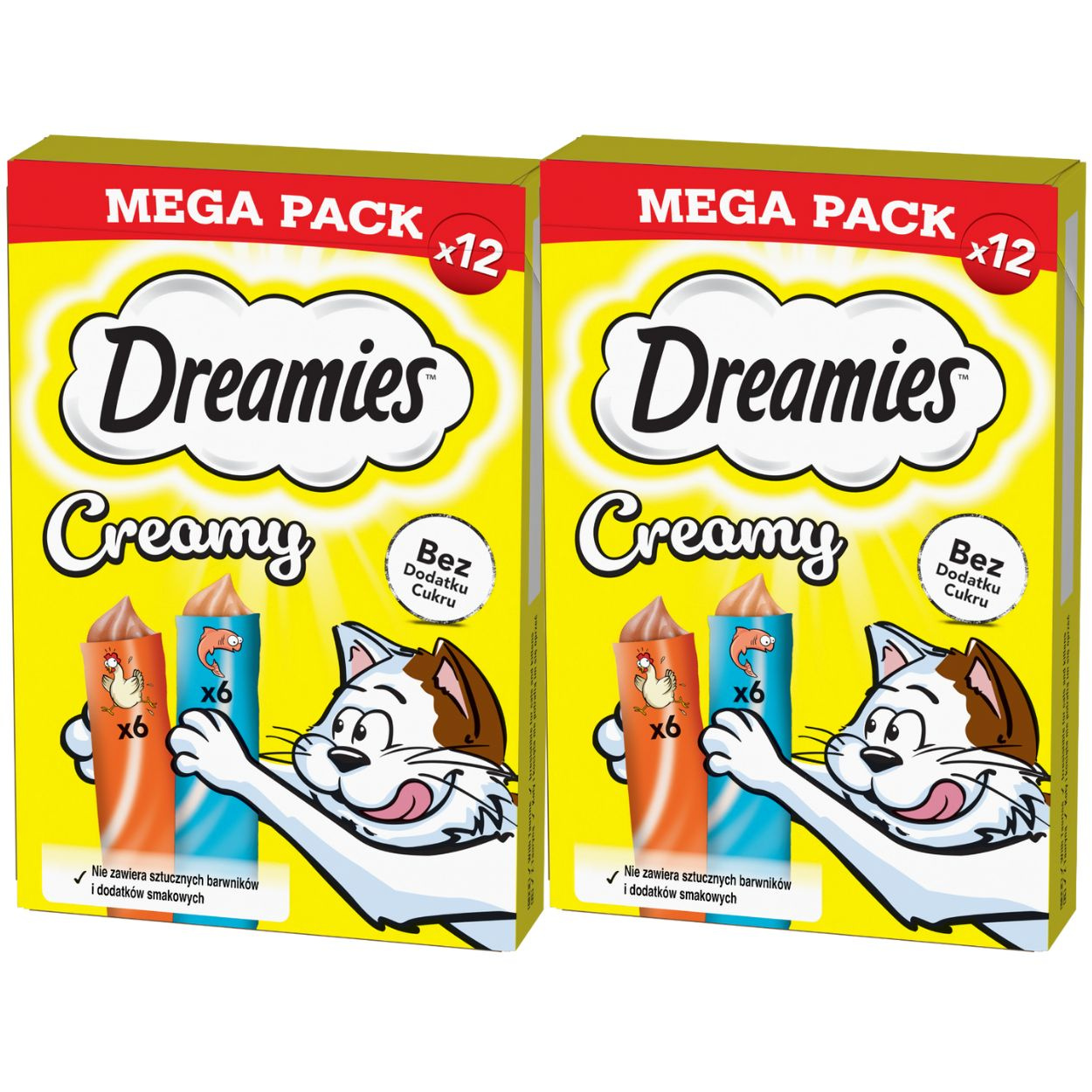 Dreamies Creamy Mega Pack z kurczakiem i z łososiem 2x 12x 10g
