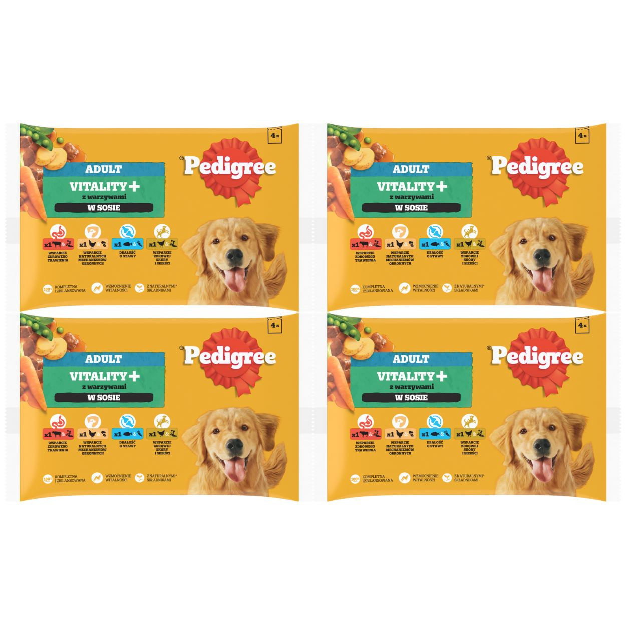 4x Pedigree Adult Vitality+ mix smaków z warzywami w sosie 4x 85gCena: 8,39 zł / szt.