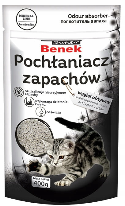 Super Benek Pochłaniacz Zapachów z Węglem Aktywnym oparty jest na naturalnym mineralnym surowcu bentonitowym i wzbogacony węglem aktywnym pozyskiwanym z łupin orzechów kokosowych. Dzięki wysokiej porowatości węgla aktywnego skutecznie neutralizuje nieprzyjemne zapachy, ogranicza rozwój bakterii i grzybów, a jednocześnie wspiera higienę w kuwecie i wokół niej.