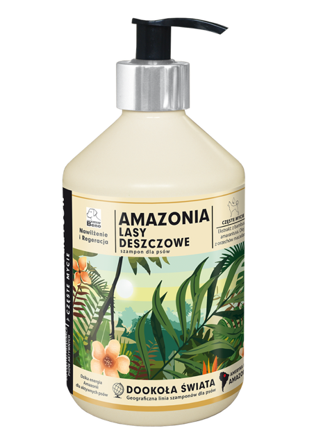 Amazonia to źródło niespotykanych drzew, roślin i owoców, z których możemy czerpać, aby zachować świeżość i witalność. Amazonia żyje swoim rytmem i pobudza do aktywnego życia. Szampon Amazonia został przystosowany do sierści psów aktywnych, często przebywających na powietrzu. Zastosowane łagodne składniki myjące, substancję nawilżające oraz składniki aktywne regenerują i nawilżają sierść po intensywnym wysiłku. Olej z orzechów macadamia poprawia kondycję sierści. dedykowany jest szczególnie do sierści przesuszonej, łamliwej, które potrzebują gruntownej odbudowy, narażonej na czynniki zewnętrzne. Ekstrakt z bambusa chroni przed niekorzystnym promieniowaniem UVA i UVB, redukuje wypadanie sierści oraz wspomaga pozbywanie się bakterii ze skóry i sierści w trakcie kąpieli. Ekstrakt z Amarantusa pomaga w zatrzymywaniu wilgoci w skórze, przez co zapobiega jej przesuszaniu. Działa kojąco na podrażnienia i zaczerwienienia skóry. Zastosowane surowce w szamponie Amazonia będą idealne dla skóry i sierści aktywnych psów a delikatny zapach dostarczy ukojenia po pełnym wrażeń dniu.