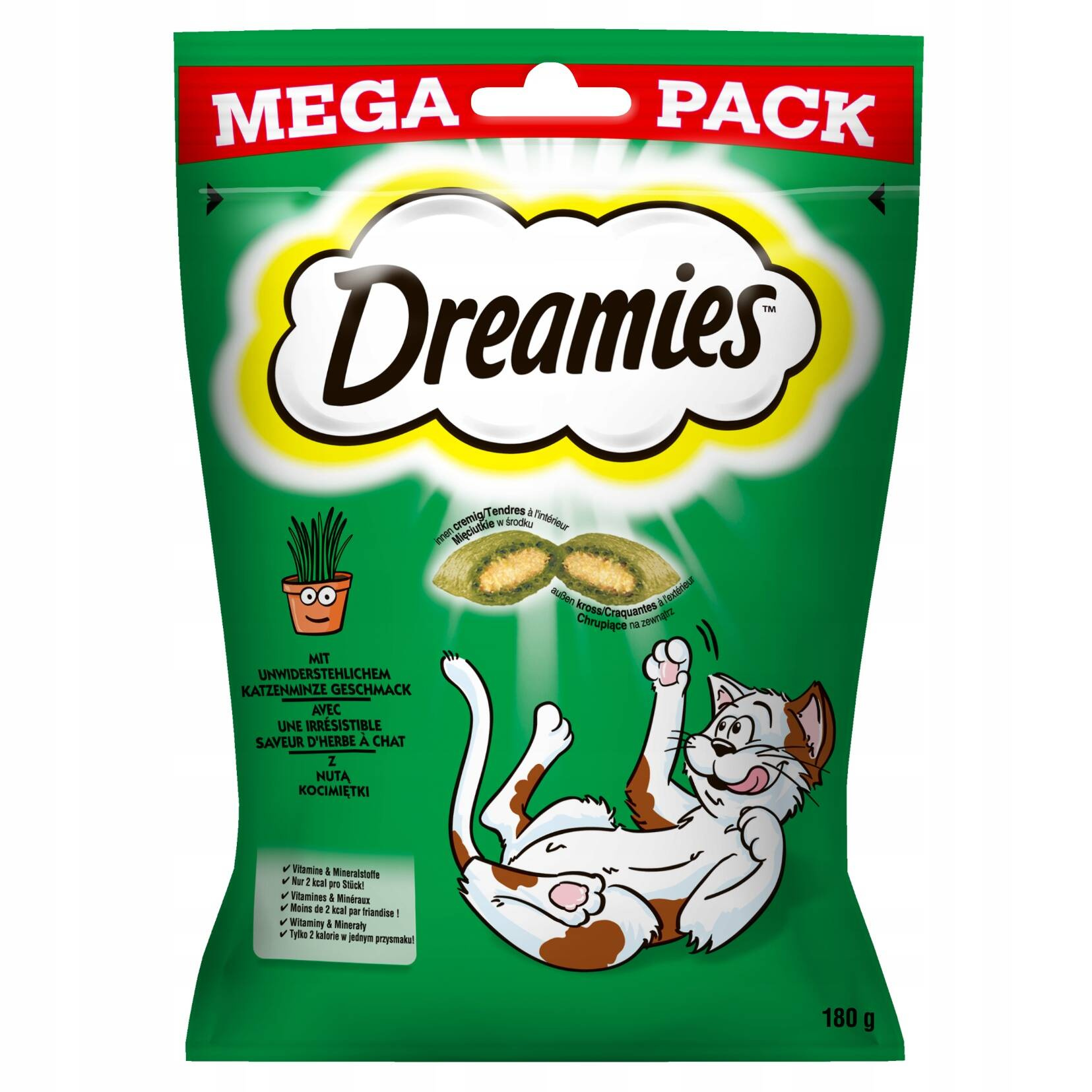 Dreamies™ z nutą kocimiętki to wyśmienite chrupiące paszteciki z miękkim nadzieniem dla kotów powyżej 8. tygodnia życia. Ich skład został opracowany przez specjalistów ds. żywienia i lekarzy weterynarii z Instytutu Nauki o Zwierzętach WALTHAM, dzięki czemu przysmaki Dreamies™ nie tylko mają doskonały smak, ale są także są wzbogacone minerałami i witaminami. Paszteciki Dreamies™ są doskonałą przekąską, którą mile zaskoczysz swojego kociego przyjaciela.