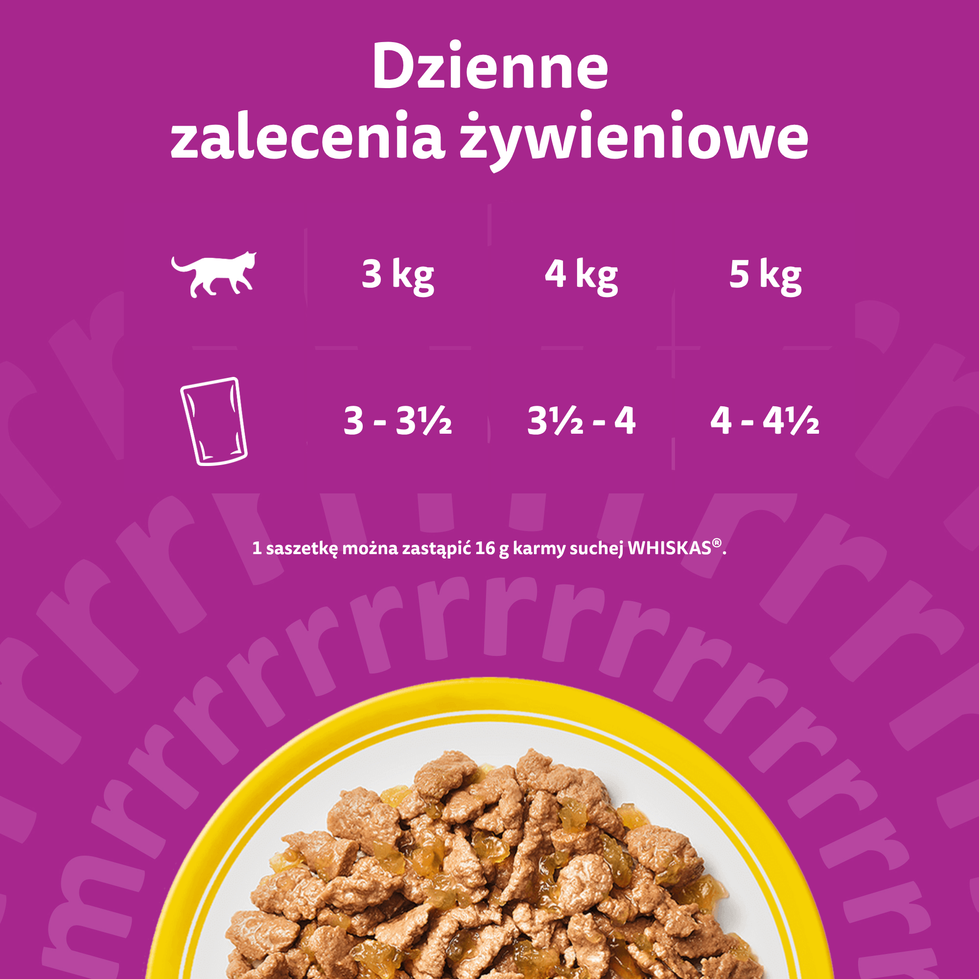 1 saszetkę można zastąpić 16 g karmy suchej WHISKAS®."