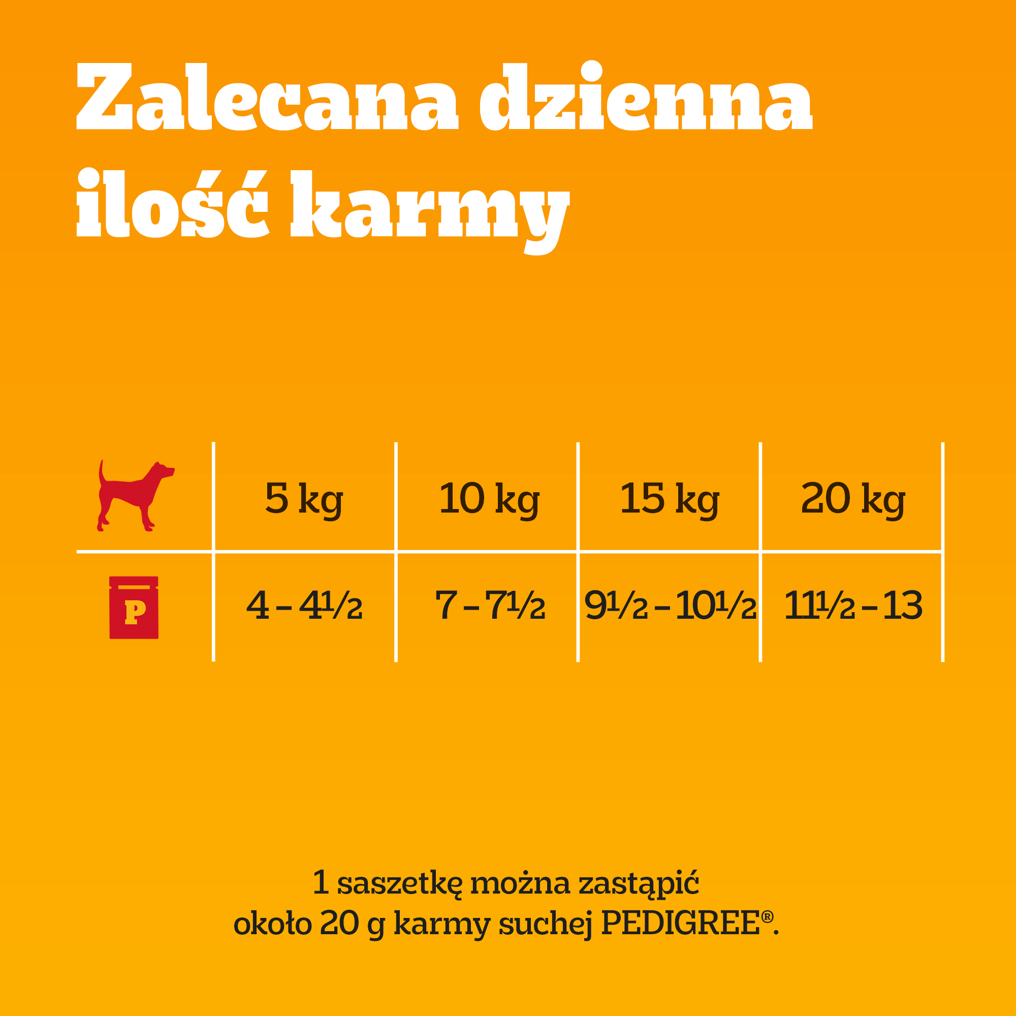 1 saszetkę można zastąpić około 20 g karmy suchej PEDIGREE®.