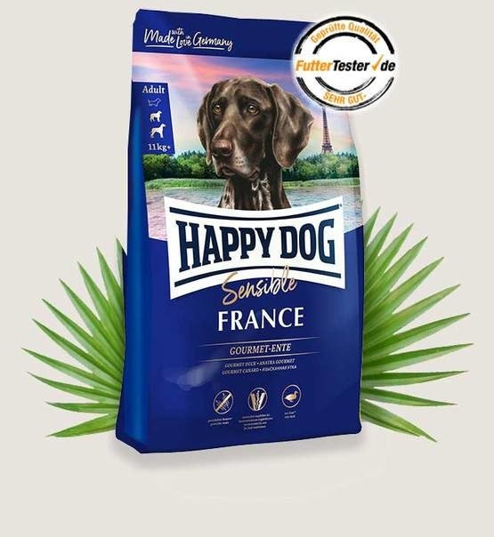 • Kompletna karma super premium Happy Dog Sensible France opiera się na holistycznej kompozycji smacznej kaczki i delikatnych ziemniakach.
