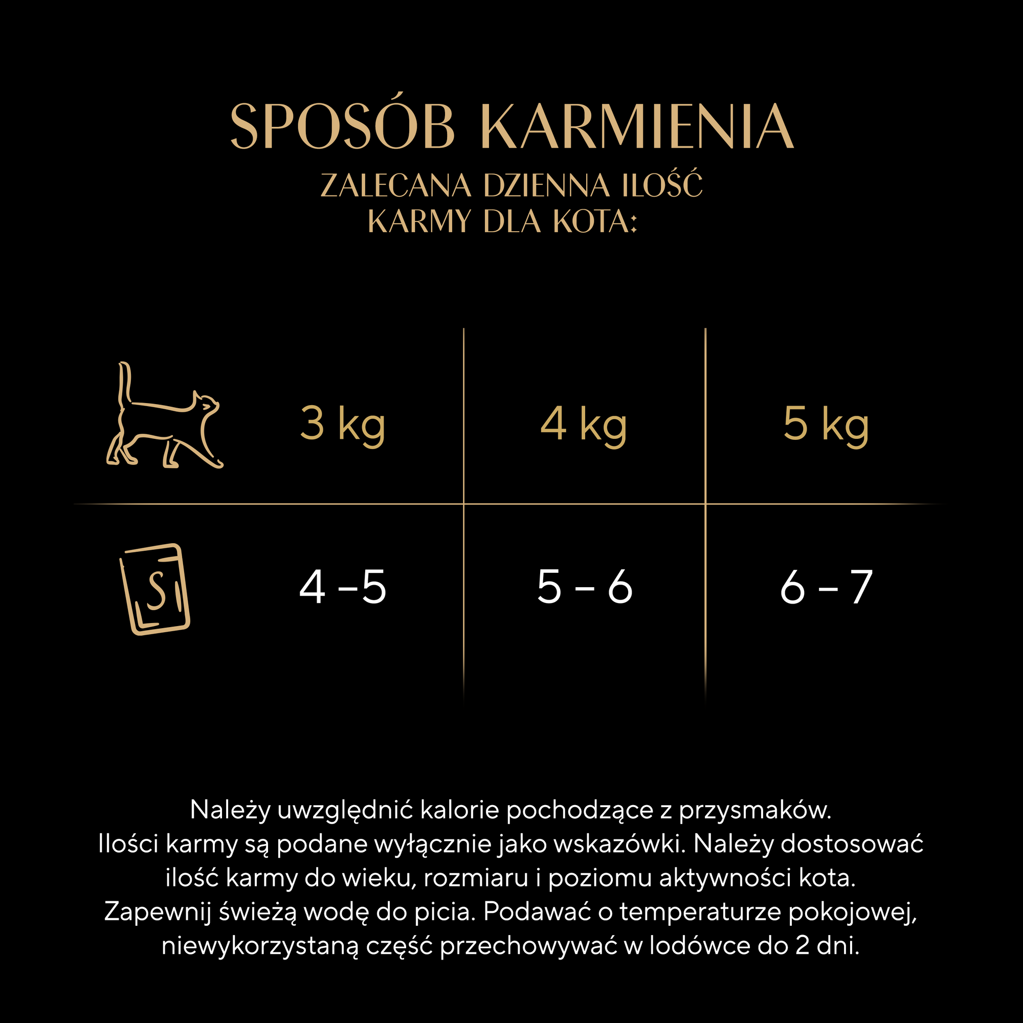 - Kot o masie ciała 3 kg potrzebuje 4-5 saszetek dziennie.