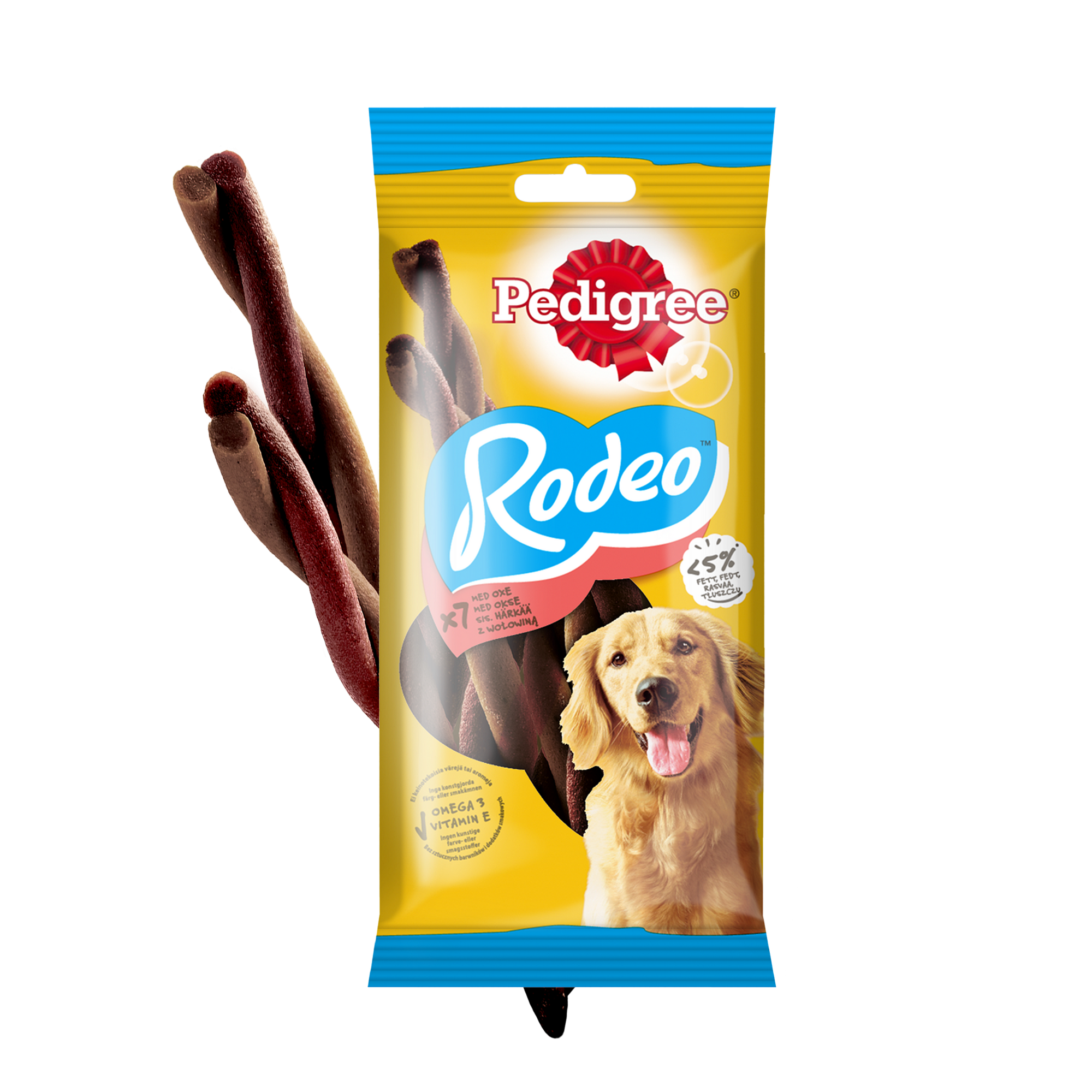 PEDIGREE® Rodeo to smakowite sprężynki do żucia mające wyjątkowy, skręcony kształt, który sprawia, że świetnie się żują, dając Twojemu pupilowi wiele zabawy i radości.