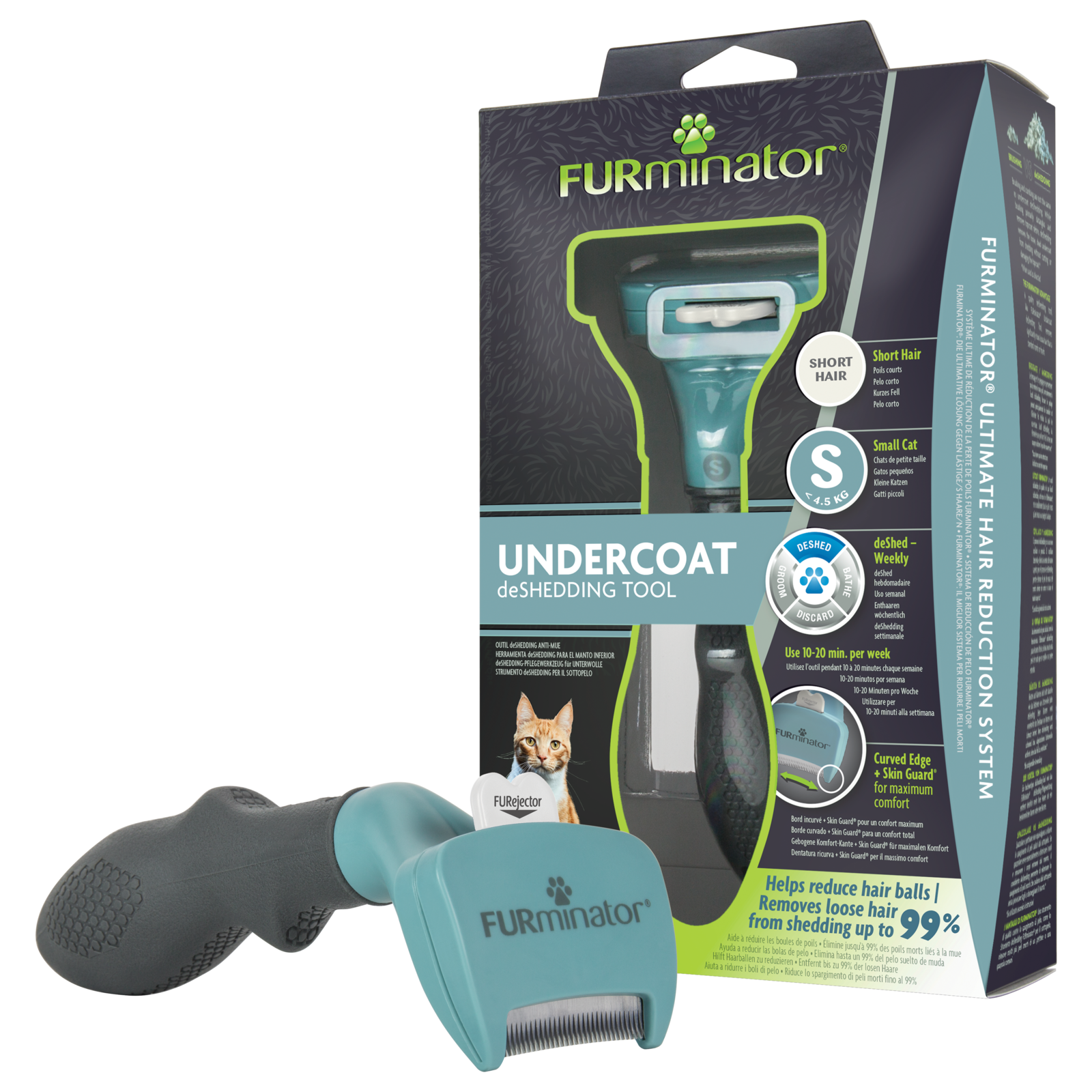 Narzędzie zaprojektowane specjalnie dla kotów o masie ciała poniżej 4,5 kg o sierści krótszej niż 5 cm. Produkt został zaprojektowany w celu promowania zdrowej skóry i sierści u zwierząt domowych oraz znacznego zmniejszenia ilości włosów, które każdego dnia zwierzę gubi i roznosi po domu. Pozwala skutecznie usuwać podszerstek i martwy włos, redukując linienie do 99%. Osłonięte krawędzie zapobiegają podrażnianiu skóry i chronią urządzenie podczas jego przechowywania dzięki technologii Edge Guard. Łatwy w obsłudze. Intuicyjne czyszczenie.