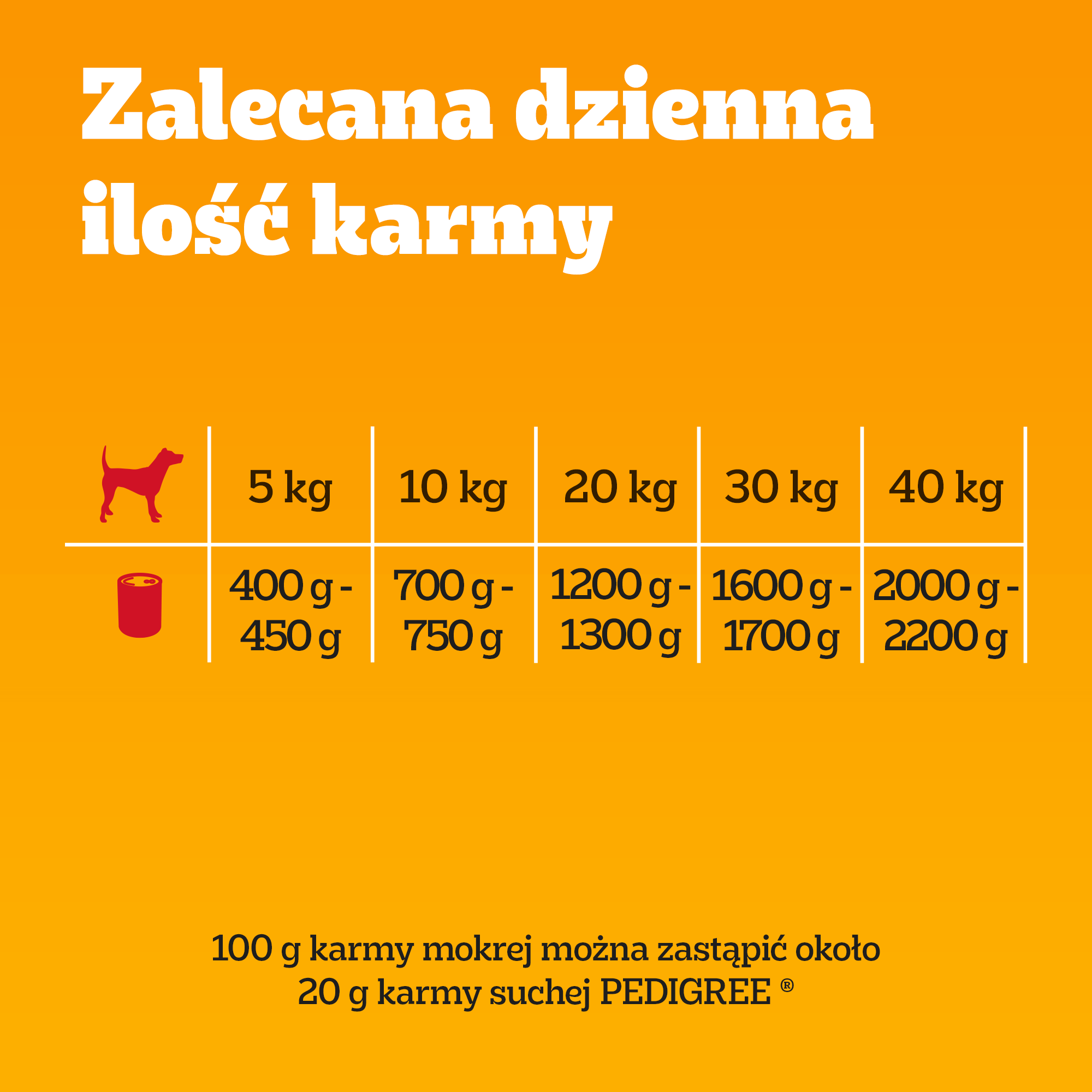 100 g karmy mokrej można zastąpić około 20 g karmy suchej PEDIGREE®.
