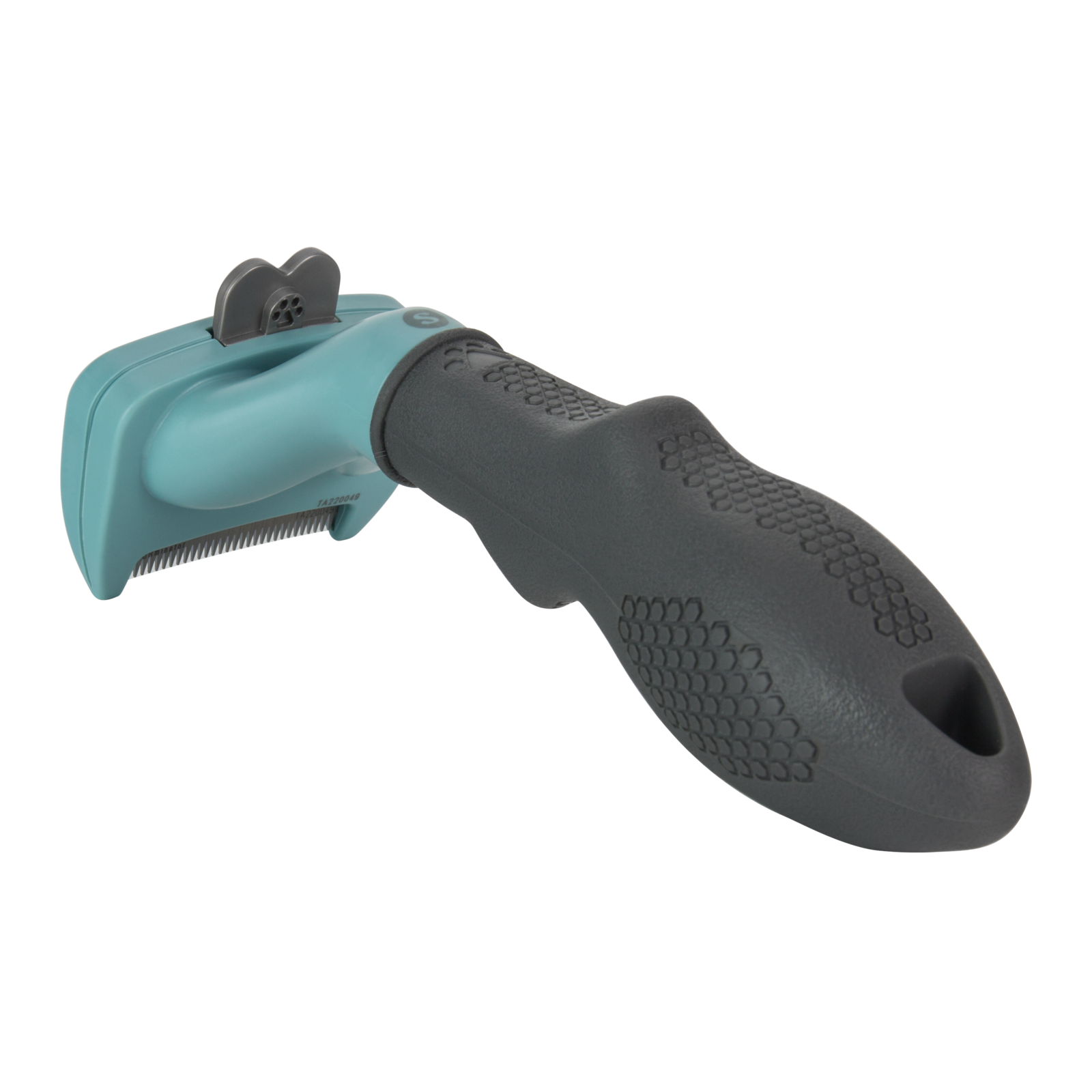 Urządzenie posiada krawędzie wykonane ze stali nierdzewnej, które sięgają przez wierzchnią warstwę sierści, aby łatwo i bezpiecznie usunąć luźny podszerstek bez ryzyka zacięcia skóry czy przycięcia sierści. Produkt „ślizga się” po skórze zwierzęcia dzięki technologii Skin Guard, zapobiegając wbijaniu się zębów w skórę.