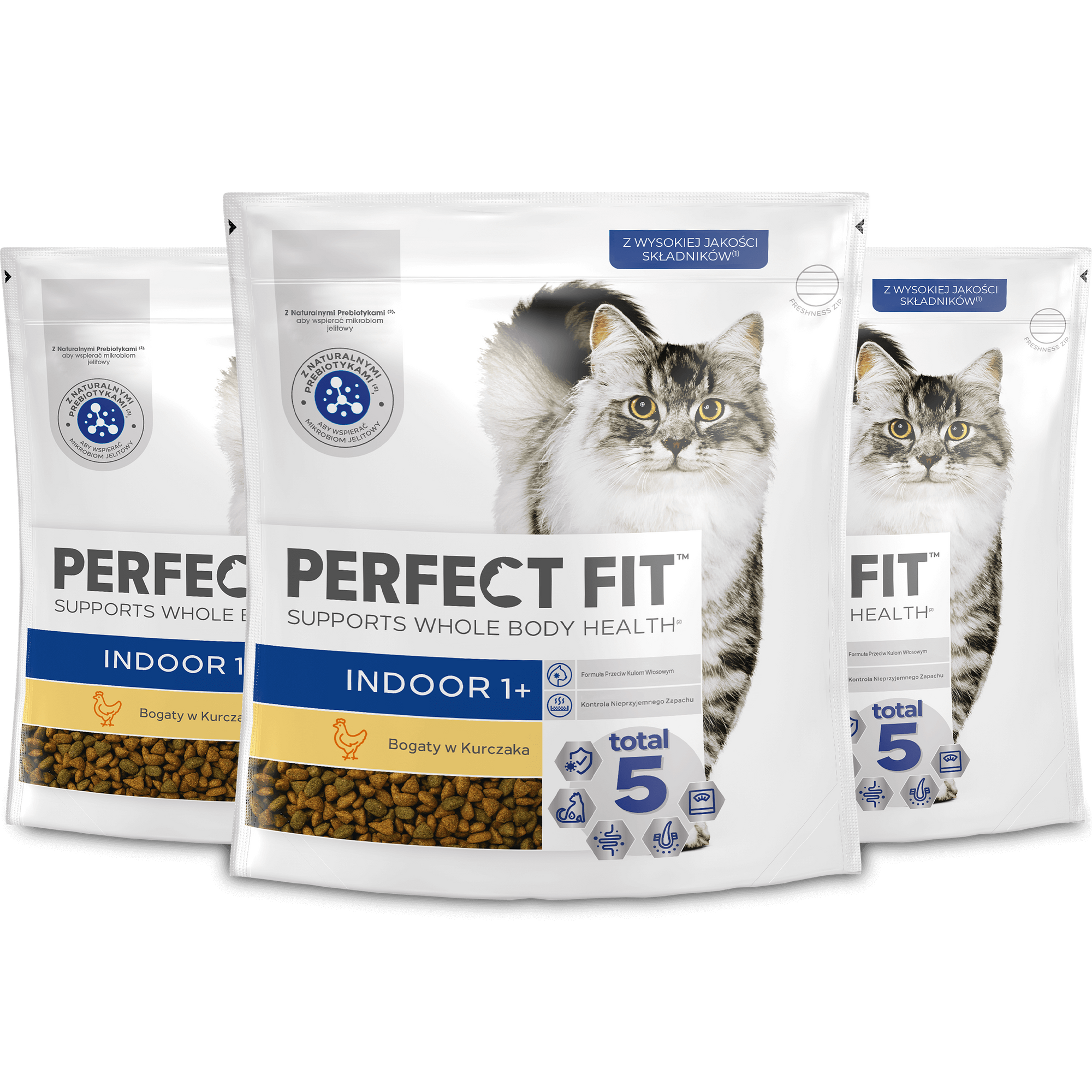 Perfect Fit™ Indoor (1+) 3x750g – sucha karma pełnoporcjowa dla dorosłych kotów, bogata w kurczaka