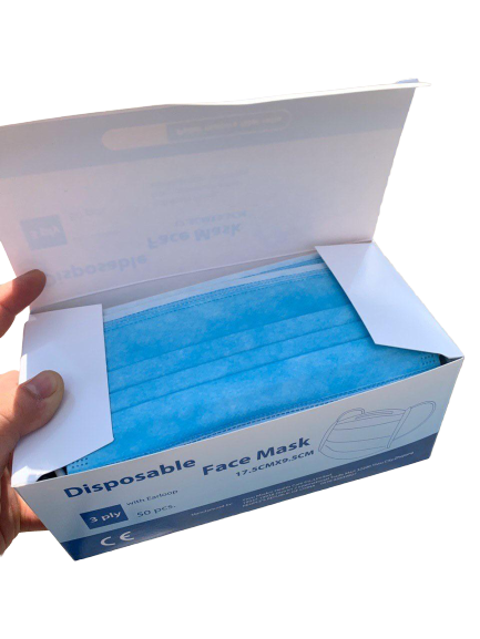 - Ochronne maseczki jednorazowe na twarz przeznaczone do użytku codziennego.