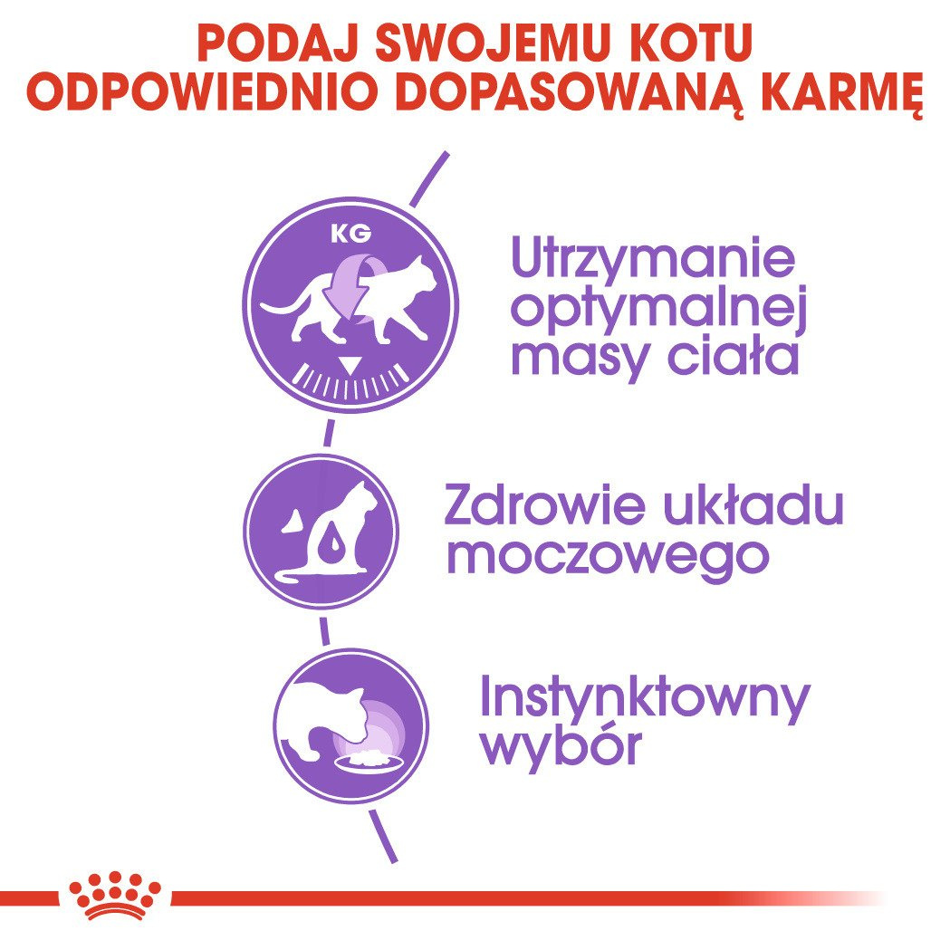 Dzięki umiarkowanemu poziomowi tłuszczu, karma mokra ROYAL CANIN® Sterilised w galaretce zmniejsza ryzyko rozwoju nadwagi.