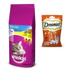 WHISKAS Adult 14 kg - sucha karma pełnoporcjowa dla dorosłych kotów, z pyszną wołowiną + DREAMIES GRATIS